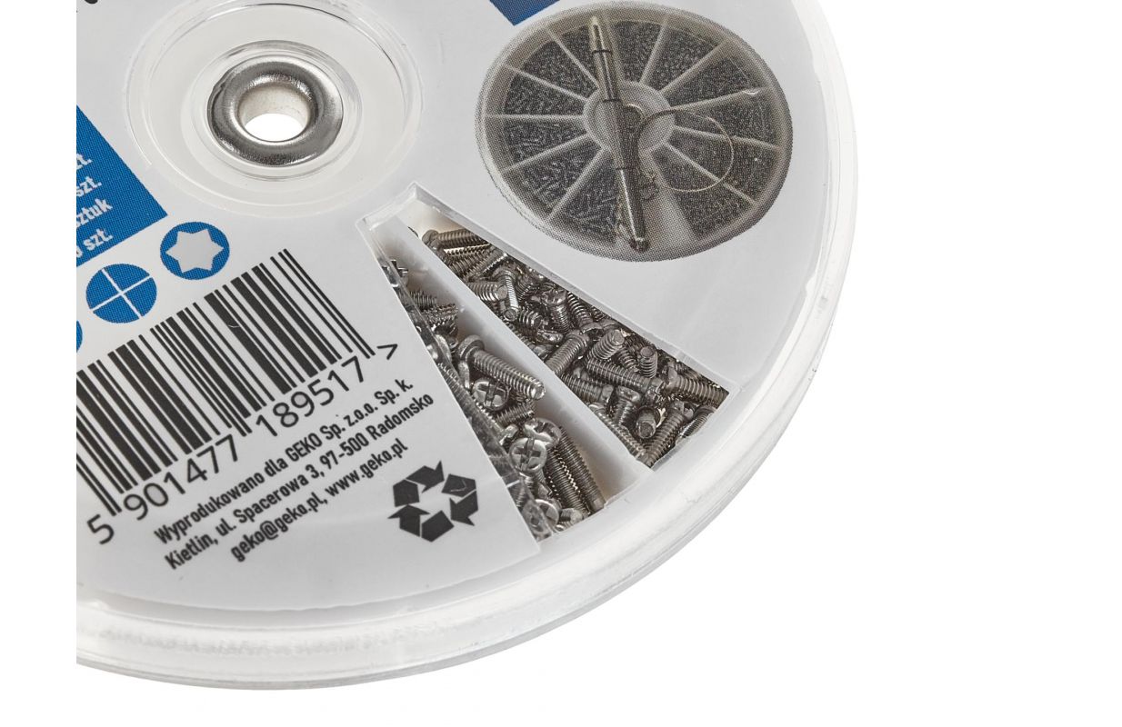Практичный ремкомплект, состоящий из 1000 штук миниатюрных винтов и гаек, специально разработанный для обслуживания и ремонта стекол, часов и других прецизионных приборов. В комплект входят гайки и болты разного размера, а входящая в комплект миниатюрная отвертка на кольце для ключей позволяет легко вносить мелочь, позволяя быстро убрать слабину и восстановить функциональность небольших механизмов.