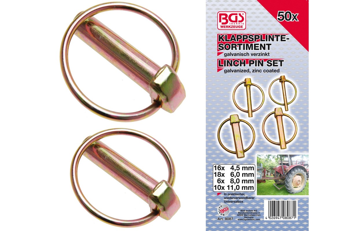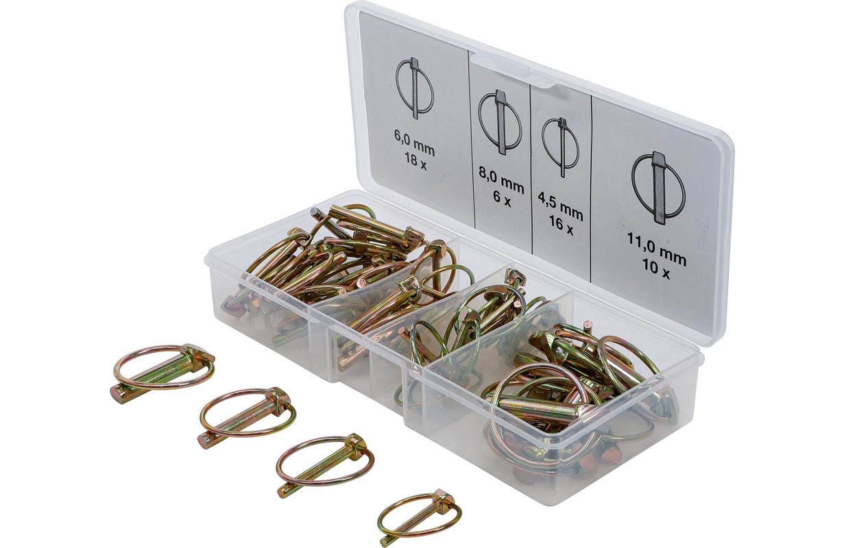 Описание в пластиковом кейсе для хранения оцинкованный, оцинкованный Комплект поставки: 16 штифтов 4,5 мм. 18 штифтов 6,0 мм 6 штифтов 8,0 мм 10 штифтов 11,0 мм Технические характеристики Полная масса 1480 г Поверхностная обработка Оцинкованная, с гальваническим покрытием