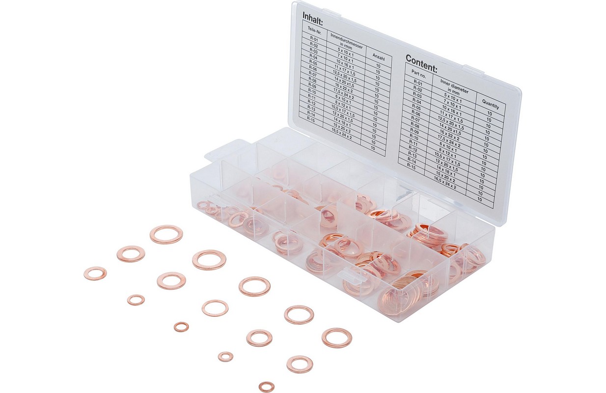 Описание для пробок слива масла в пластиковом кейсе для хранения комплект поставки: 10 уплотнительных колец внутренний Ø 5 мм x внешний Ø 10 мм, толщина: 1 мм 10 уплотнительных колец внутренний Ø 6 мм x внешний Ø 10 мм, толщина: 1 мм 10 уплотнительных колец внутренний Ø 7 мм x внешний Ø 10 мм, толщина: 1 мм 10 уплотнительных колец внутренний Ø 8 мм x внешний Ø 12 мм, толщина: 1 мм 10 уплотнительных колец внутренний Ø 10 мм x внешний Ø 16 мм, толщина: 1 мм 10 уплотнительных колец внутренний Ø 10,5 мм x внешний Ø 17 мм, толщина: 1,5 мм 10 уплотнительных колец внутренний Ø 11 мм x внешний Ø 17 мм, толщина: 1,5 мм 10 уплотнительных колец внутренний Ø 12 мм x внешний Ø 20 мм, толщина: 1,5 мм 10 уплотнительных колец внутренний Ø 12,5 мм x внешний Ø 20 мм, толщина: 1,5 мм 10 уплотнительных колец внутренний Ø 14 мм x внешний Ø 18 мм, толщина: 1 мм 10 уплотнительных колец внутренний Ø 14 мм x внешний Ø 20 мм, толщина: 1,5 мм 10 уплотнительных колец внутренний Ø 15 мм x внешний Ø 20 мм, толщина: 2 мм 10 уплотнительных колец внутренний Ø 16 мм x внешний Ø 22 мм, толщина: 2 мм 10 уплотнительных колец внутренний Ø 16,5 мм x внешний Ø 24 мм, толщина: 2 мм 10 уплотнительных колец внутренний Ø 17,5 мм x внешний Ø 24 мм, толщина: 2 мм Технические данные Вес брутто 290 г Упаковка подходит для настенного монтажа Да