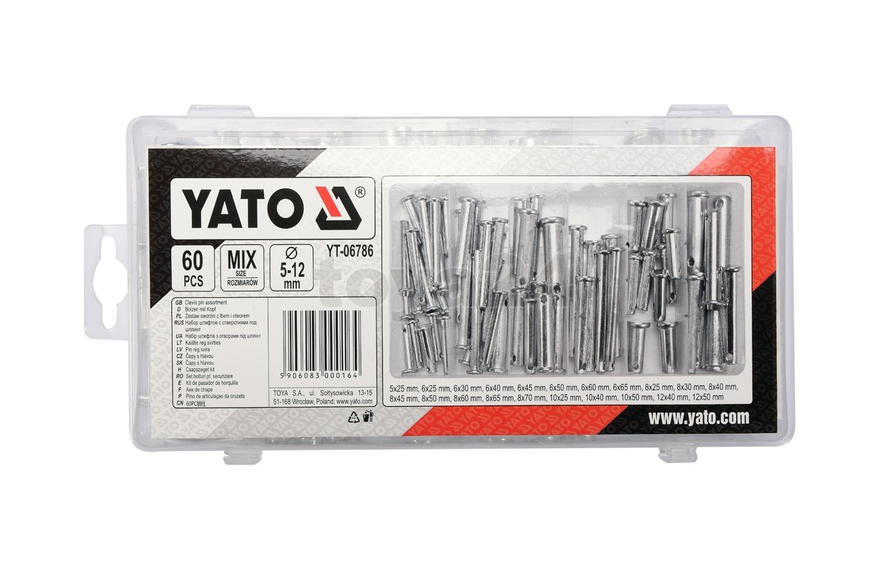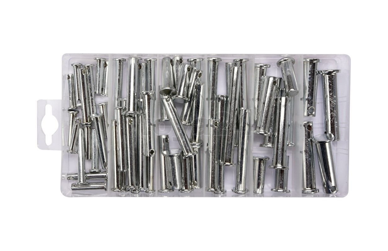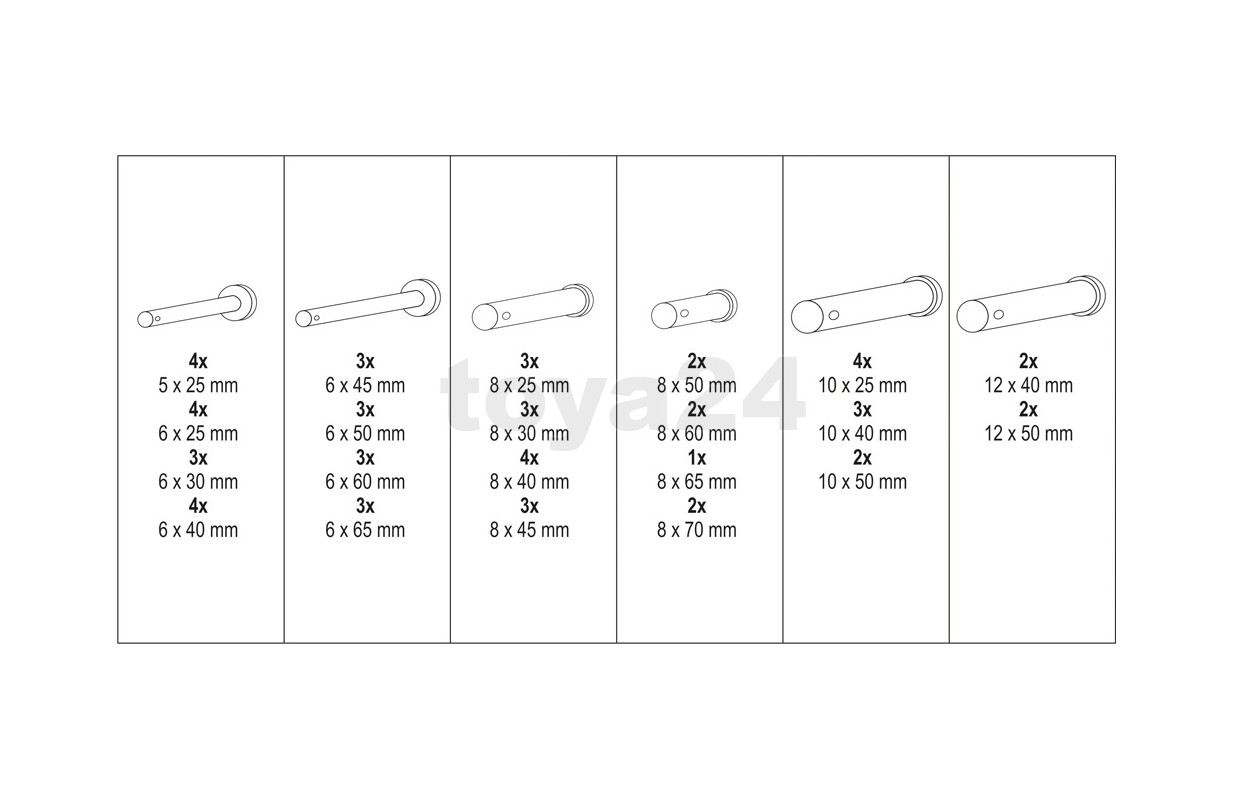 Набор из 60 штук болтов с головкой и отверстием. В набор входят размеры от 5х25 мм до 12х50 мм. Все это было помещено в удобную упаковку типа "сортер".