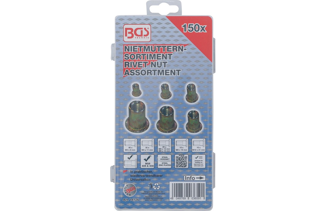 Ассортимент заклепочных гаек | оцинкованная сталь | 150 шт. (14126)