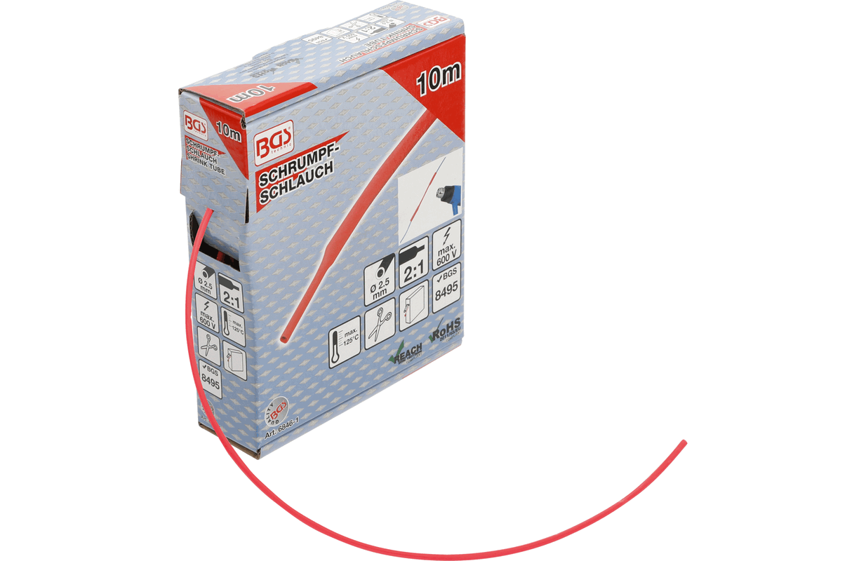 Термоусадочная трубка красная | коробка | Ø 2,5 мм | 10 м (6846-1)