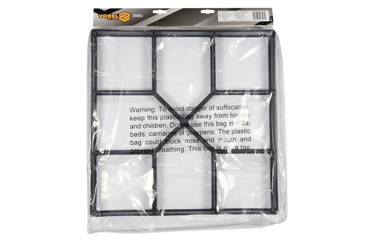 Форма для изготовления рисунка брусчатки в свежезалитом бетоне, имитирующего плитку или камень. Форма изготовлена из твердого полипропилена (ПП), что делает ее пригодной для многократного использования.