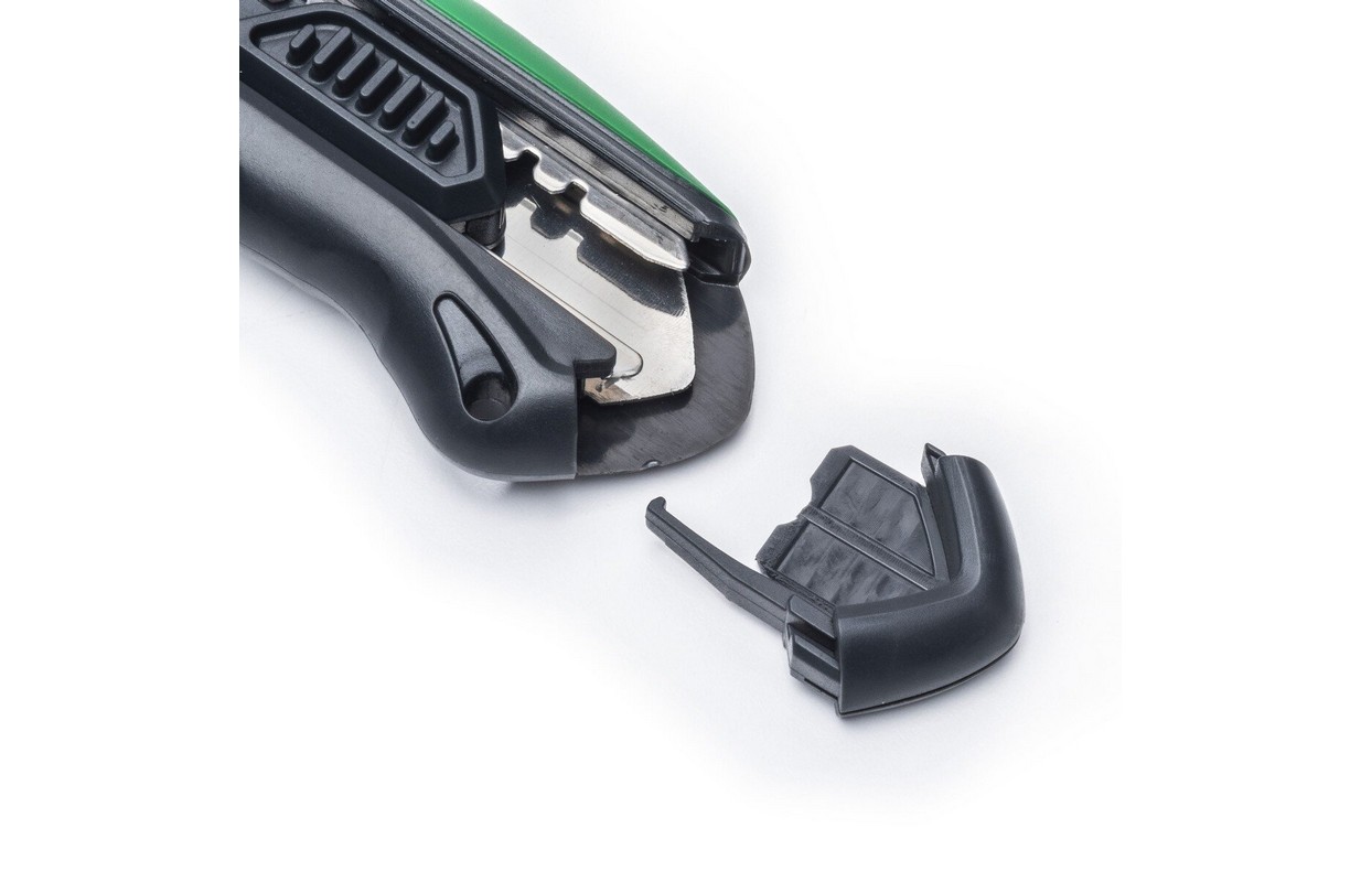 Уникальная защелка лезвия выдвигается из корпуса для легкого доступа, легко обновляя край лезвия.