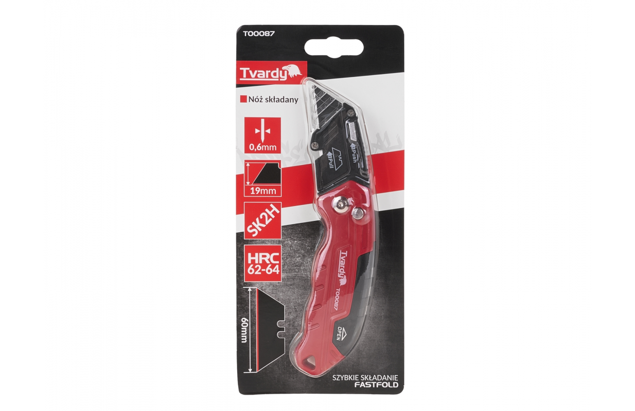 Складной нож с трапециевидным лезвием 60x19x0.6мм SK2H TVARDY (T00087)