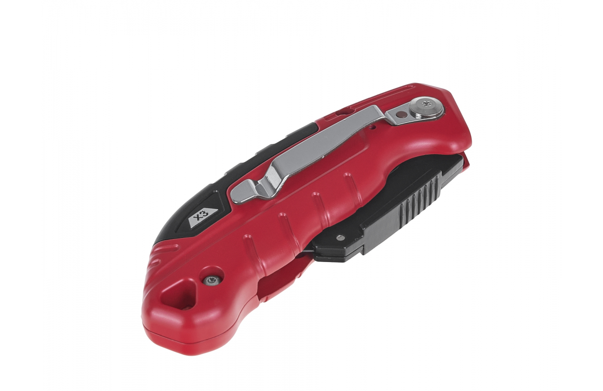 Максимальный комфорт во время работы гарантируется 3-позиционной фиксацией положения лезвия. Еще одним преимуществом нашего ножа является практичная кнопка, которая позволяет мгновенно заменить изношенное лезвие на новое. Рукоятка лезвия с чрезвычайно полезным встроенным местом для хранения 3 запасных лезвий.