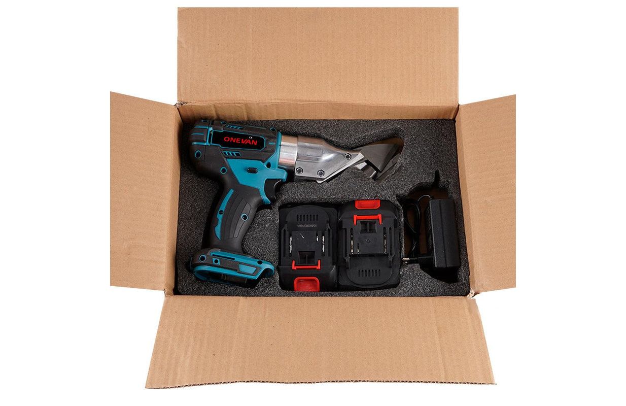 1 х электрические ножницы для штамповки 1 х коробка 1 х Руководство пользователя 1 х зарядное устройство 2 х Батарея
