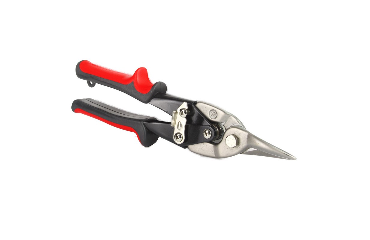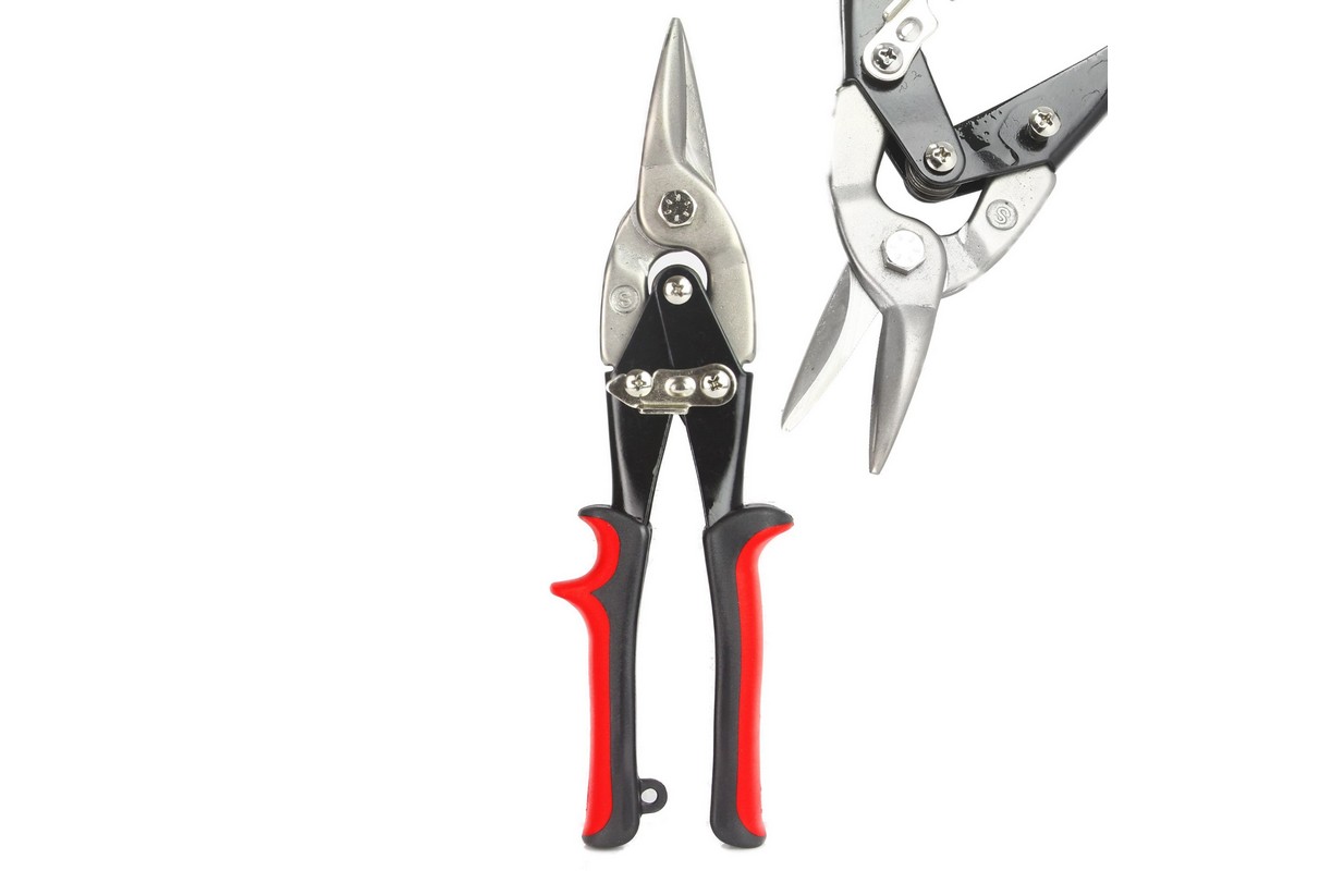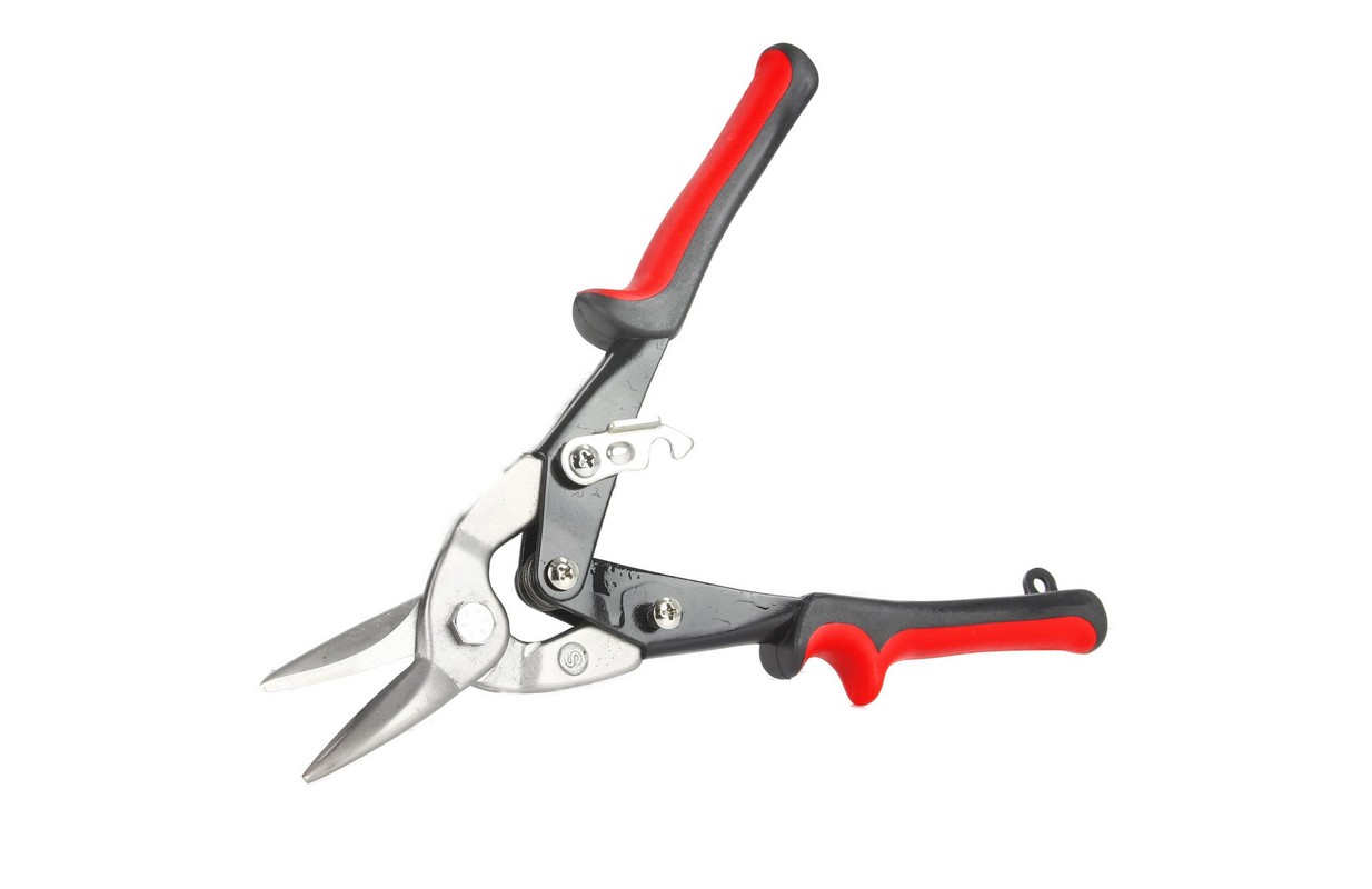 Ножницы для резки листового металла , цельные лезвия ножниц, дополнительная зубчатая насечка, препятствующая соскальзыванию распиливаемого материала. Эргономичная ручка обеспечивает надежный и удобный захват инструмента. Ножницы имеют фиксирующий механизм в закрытом положении. Специально разработанные ручки с местом для указательного пальца и крючка.