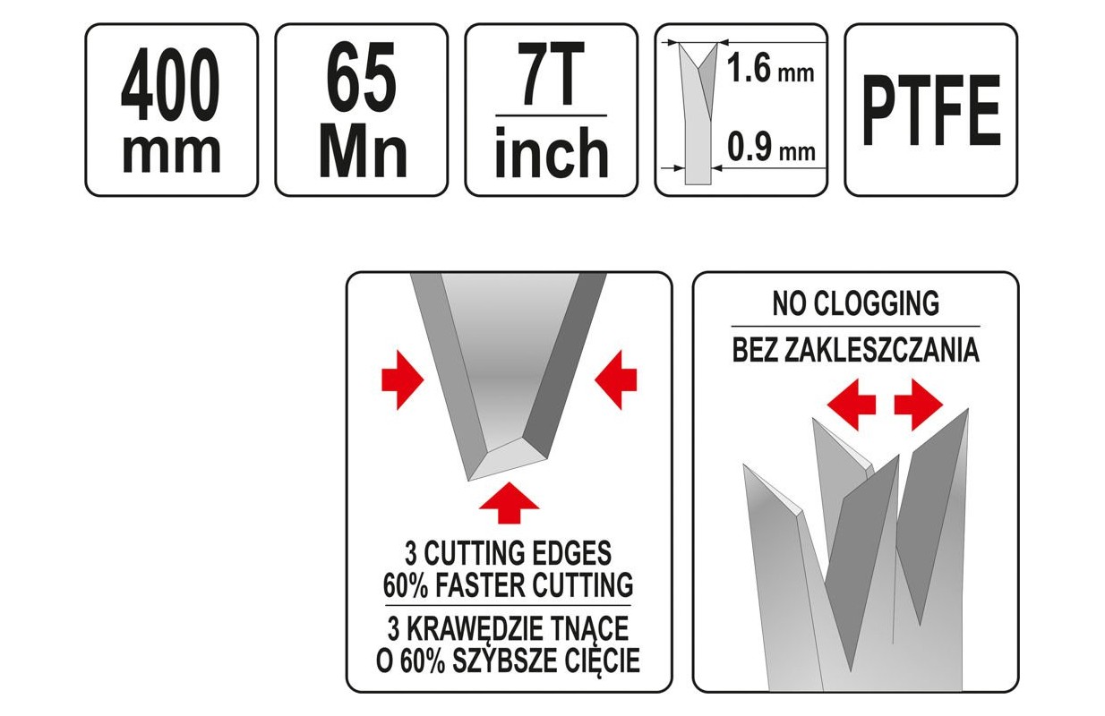 Ручные пилы для резки дерева и древесных материалов, таких как фанера, ДСП, МДФ. • лезвие из стального листа с добавлением марганца (Mn 65) с высокой стойкостью к стиранию и деформации • поверхность лезвия покрыта слоем PTFE для уменьшения трения при резке • трехсторонние зубы, адаптированные для агрессивной, эффективной резки в обоих направлениях • высокая жесткость листа и зубьев с шагом 7 т / дюйм обеспечивают эффективную, быструю и точную резку • толщина лезвия: 1 мм • деревянная ручка покрыта защитной, толстой резиной • профилирование рукоятки позволяет прокладывать материал под углом 45° и 90°
