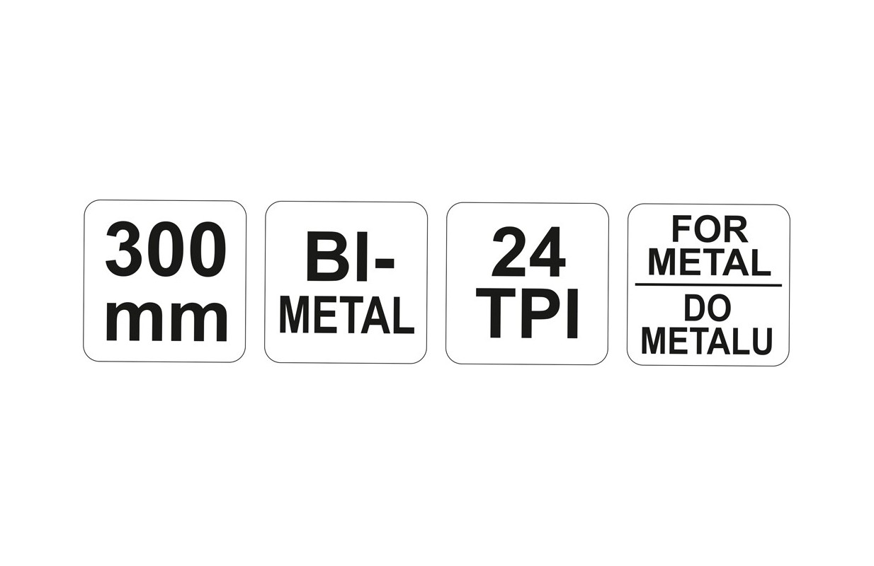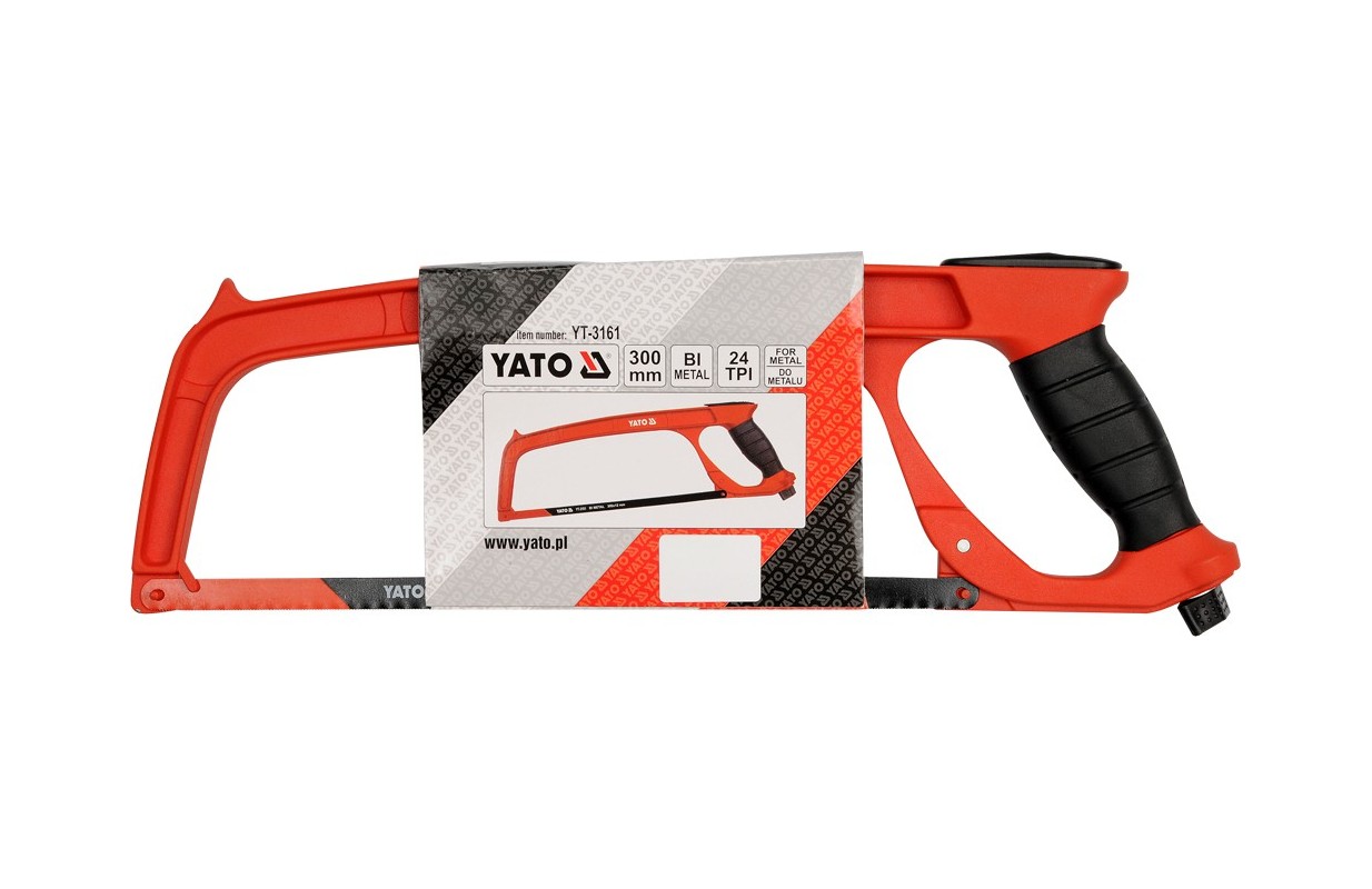 Рама металлической пилы l 300 мм, изготовлена из литого под давлением алюминия. Благодаря специальному профилю и выштамповкам, чрезвычайно легкая и жесткая. Закрытая полипропиленом рукоятка защищает руку оператора от случайных травм. Эффективное натяжение лезвия с помощью ручки в нижней части рукоятки. Поверхность покрыта пластиком. В комплект входит биметаллическое лезвие 300 x 12 мм, 24 tpi.