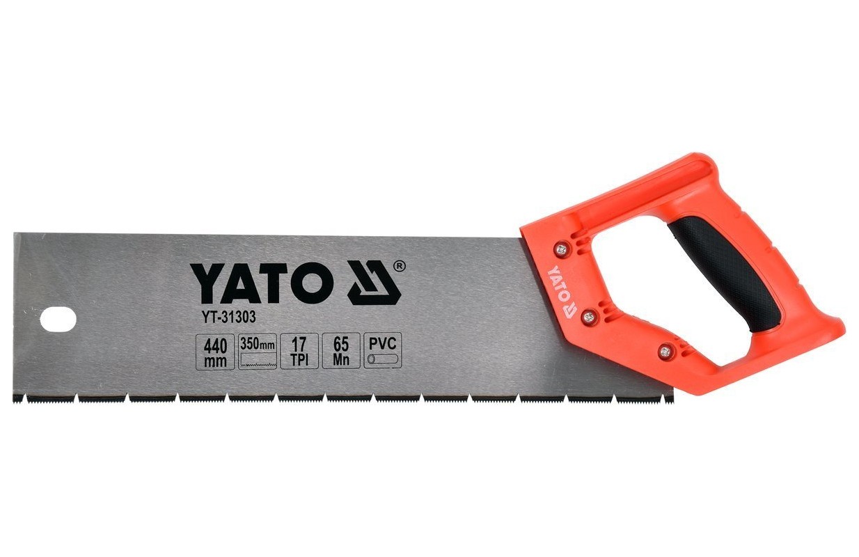 Пила ручная l-350 мм, зубья с индукционной закалкой, разрезные, градуировка 15TPI. Очень мелкие, плотные зубья позволяют точно резать дерево и ПВХ, особенно рекомендуется для резки труб из ПВХ. Рукоятка изготовлена из жесткого пластика с резиновой вставкой, неразъемное соединение тремя винтами. клинок из марганцовистой стали 65 Мн.
