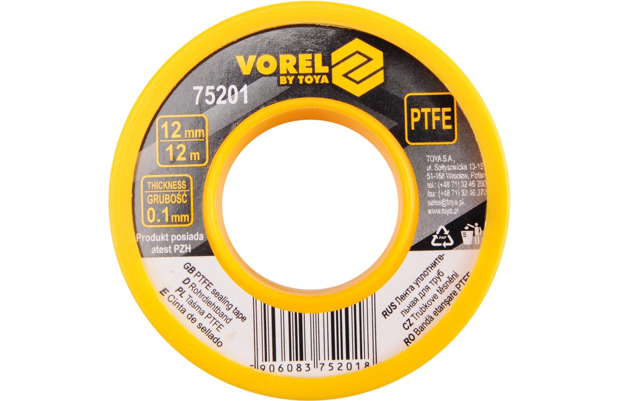 Тефлоновая лента для герметизации резьбовых соединений в сантехнических установках. Размер 12Mx12MMx0.1MM. Имеет допуск PZH для контакта с питьевой водой.