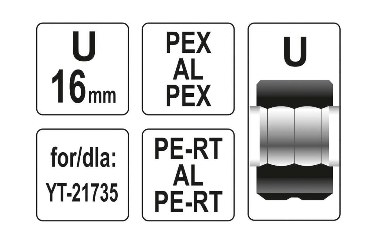 Обжимочная головка тип U 16мм для YT-21735 (YT-21740)