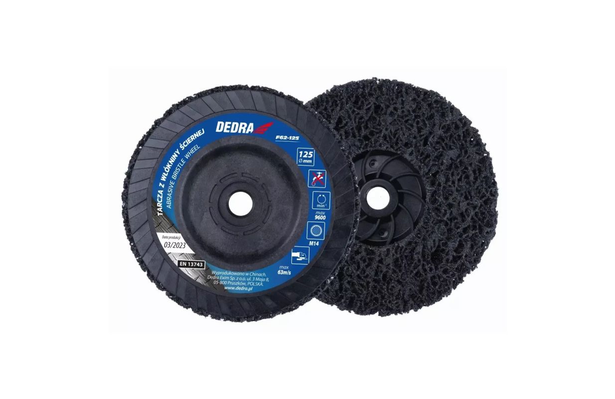 Нетканый абразивный диск DEDRA F62-125 из нейлонового волокна с покрытием из карбида кремния - надежный инструмент для установки на угловую шлифовальную машину.