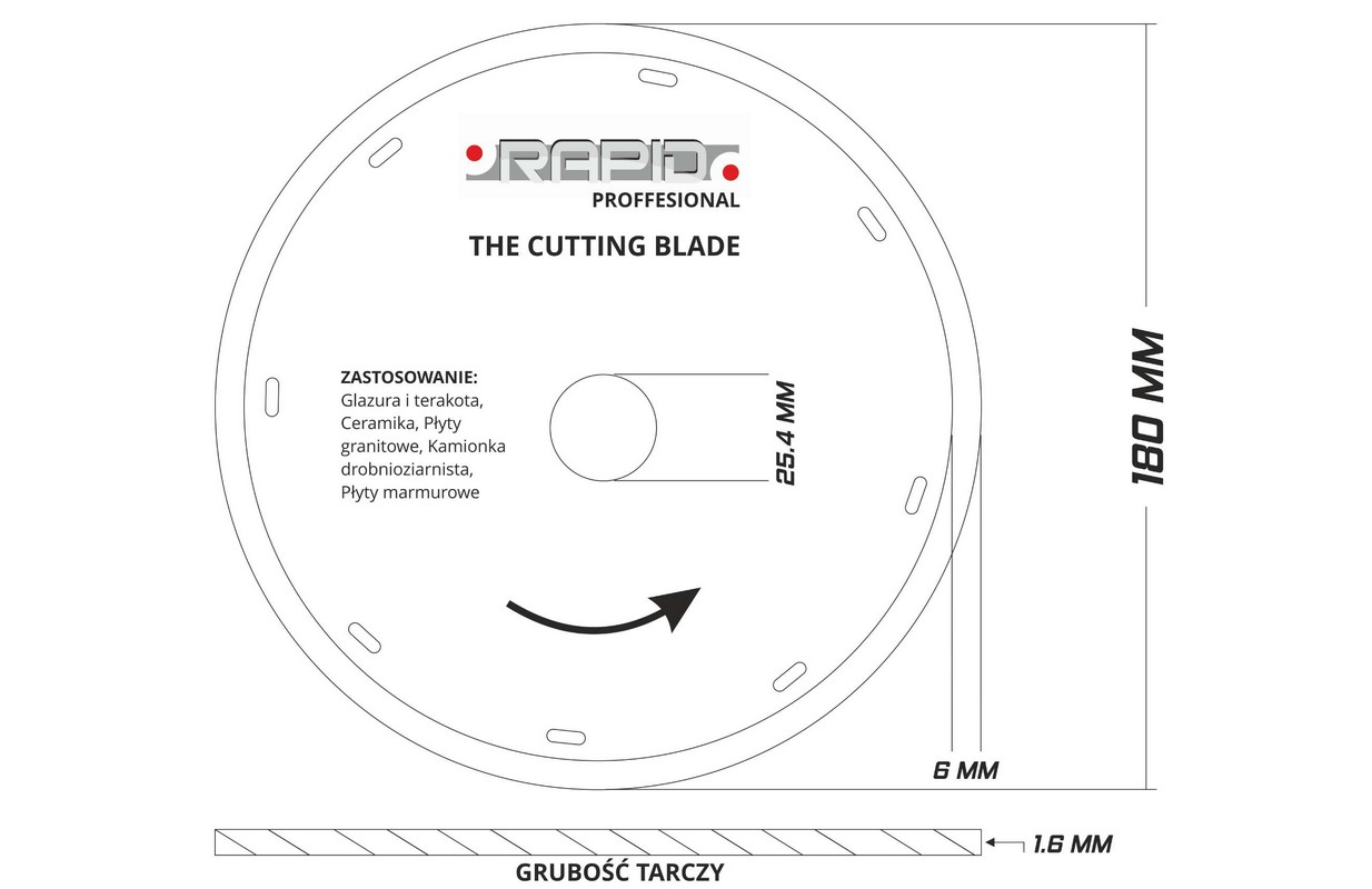 АЛМАЗНЫЙ ДИСК для резки керамики 180 x 1,6 мм x 25,4 ТОНКИЙ, БЕЗ ИСКРЫ, ЭФФЕКТИВНАЯ РЕЗКА