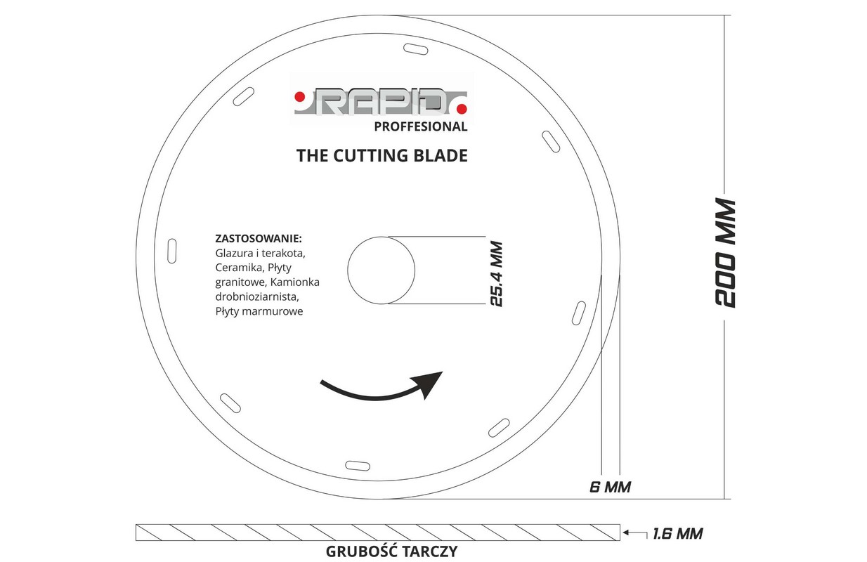 АЛМАЗНЫЙ ДИСК для резки керамики 200 x 1,6 мм x 25,4 ТОНКИЙ, БЕЗ ИСКРЫ, ЭФФЕКТИВНАЯ РЕЗКА