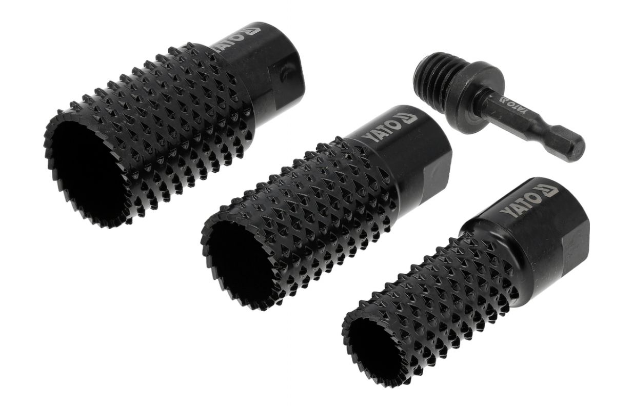 Дополнительно: Серия: GRD Диаметр: 20, 25, 30 мм Размер держателя: 1/2" (12.7 мм) Тип держателя инструмента: шестигранный Размер резьбы: M14 Материал: углеродная сталь Обороты: 12500 мин⁻¹ Шт.: 4 Комплект включает: рашпиль x3, адаптер [eng] Применение: дерево Символ: YT-61775