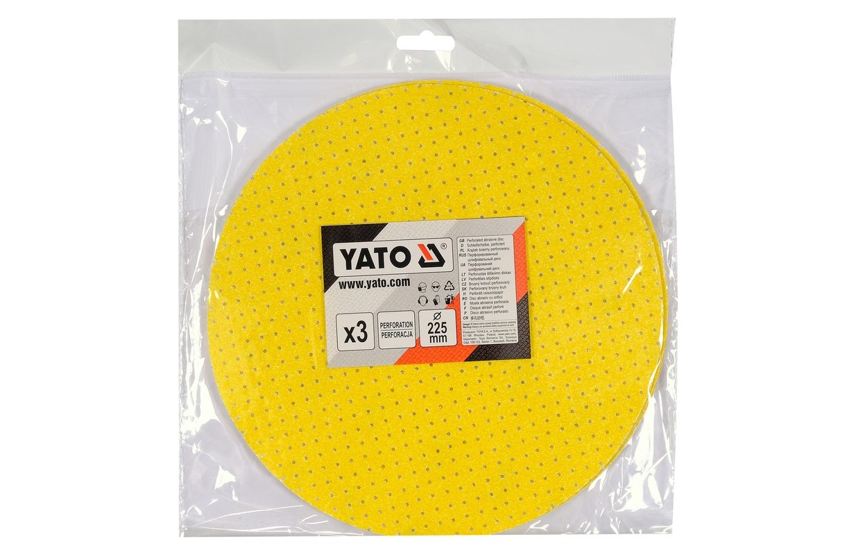 Перфорированный шлифовальный круг на липучке P100 | 225 мм | 3 шт. (YT-846023)