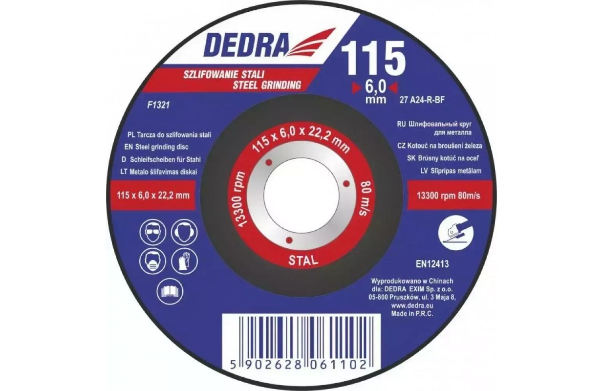 Стальной шлифовальный диск DEDRA F1321 выпуклый 115x6,0x22,2мм (F1321)