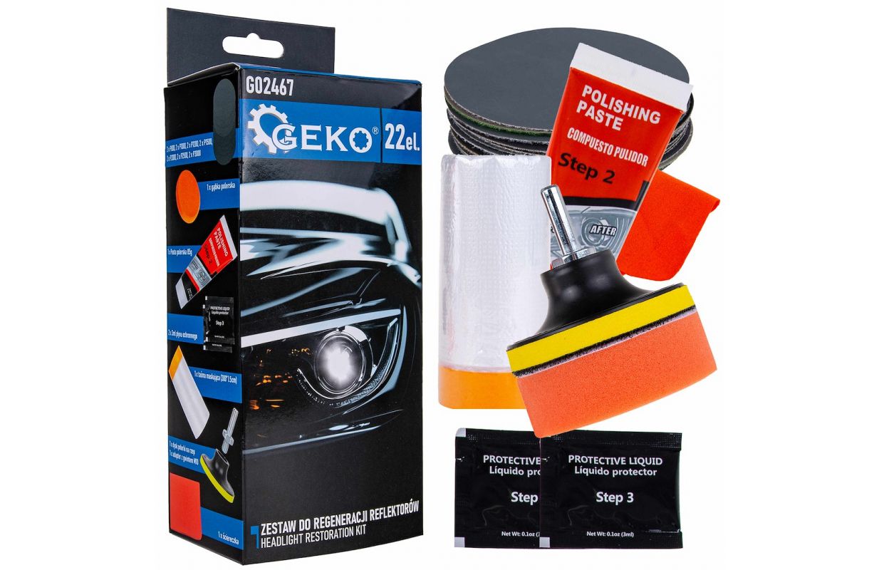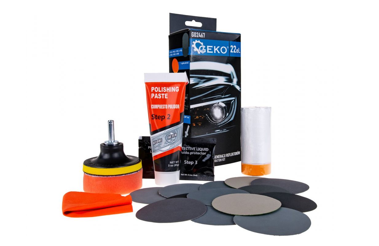 Фары вашего автомобиля тусклые, желтые или покрыты царапинами? С помощью комплекта для восстановления фар Geko вы можете восстановить их блеск и чистоту в собственном гараже! Этот полный комплект включает в себя все необходимое для пошаговой очистки, полировки и защиты фар, обеспечивая профессиональный результат без дорогостоящего визита в мастерскую.
