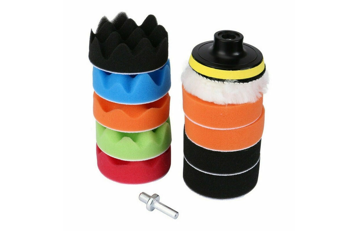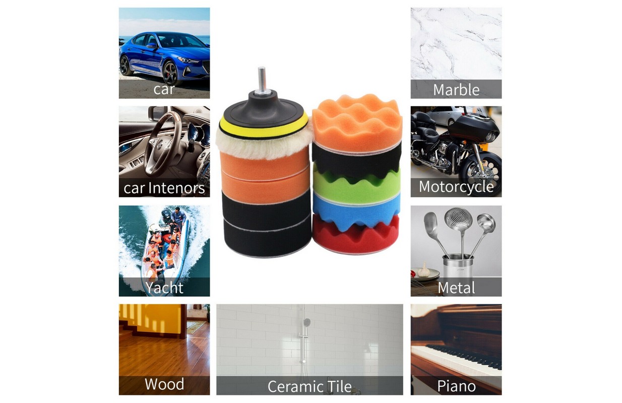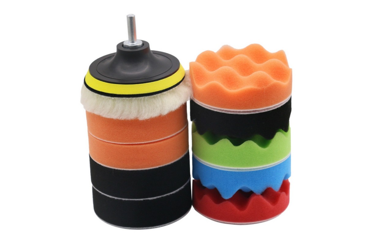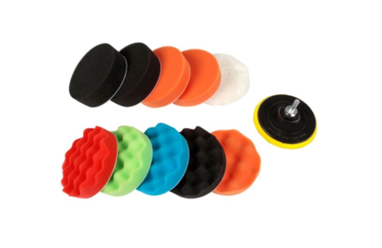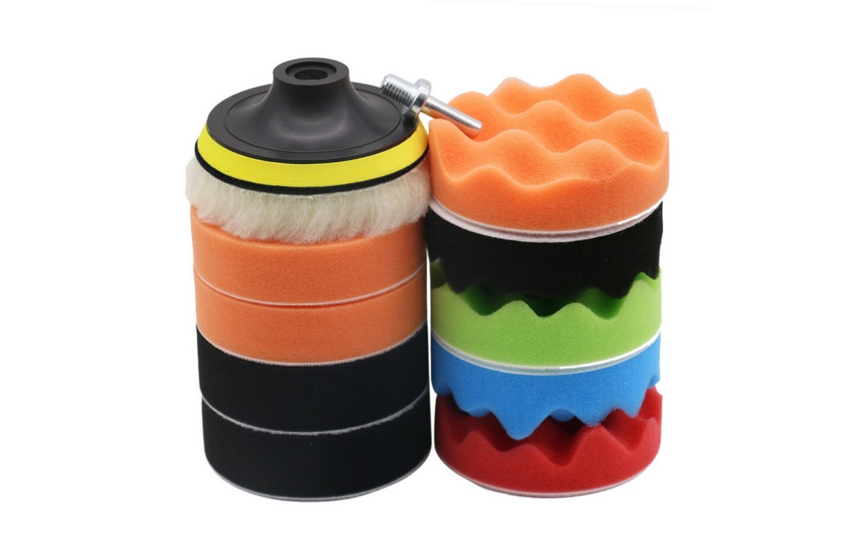 5 вафельных подушечек из вспененного материала, 4 плоских подушечки из вспененного материала, полировальная подушечка из полиэстера .125 мм опорная пластина с крючками и петлями. M14 Arbo.r