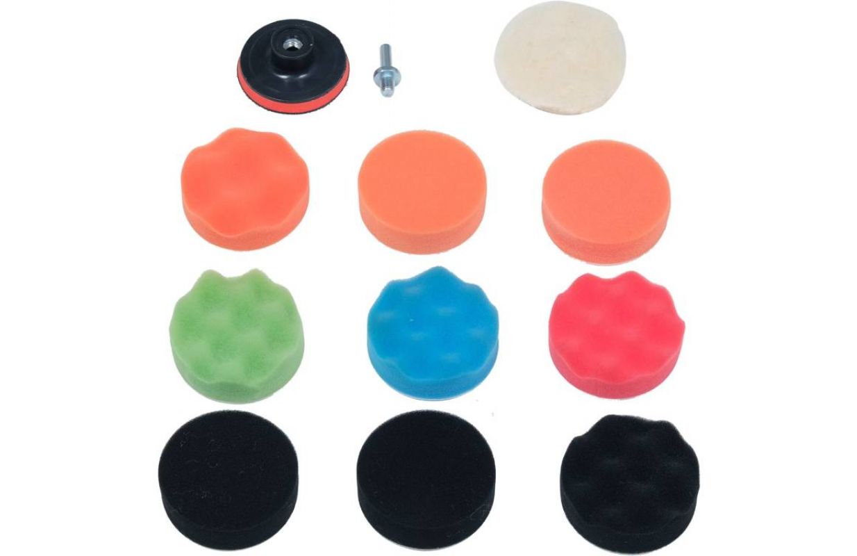 12 Полировальный набор диаметром 80 мм. Полировальная ручка с размером резьбы M10 с адаптером для ручки 8 мм. максимальное число оборотов: 6 000 об/мин