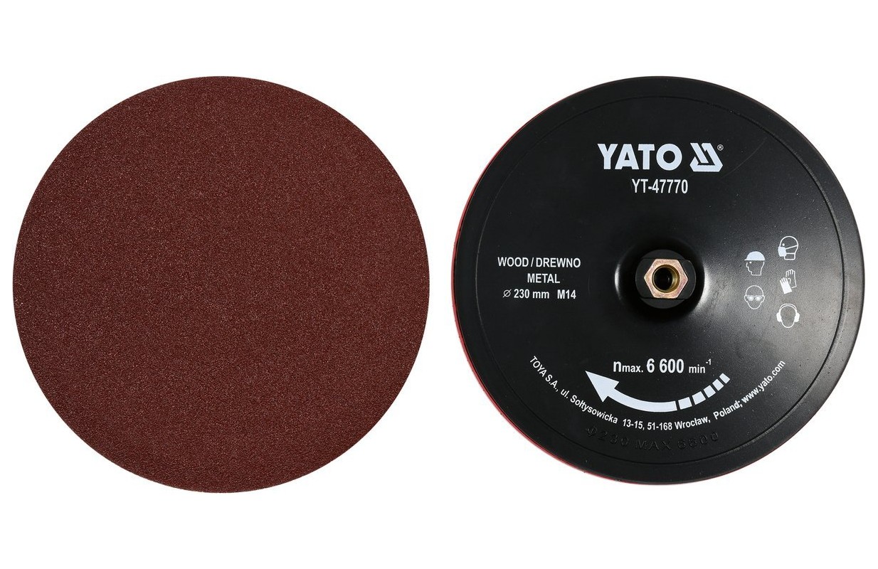 Подошва шлифовальная 230мм М14 с липучкой + адаптер (YT-47770)