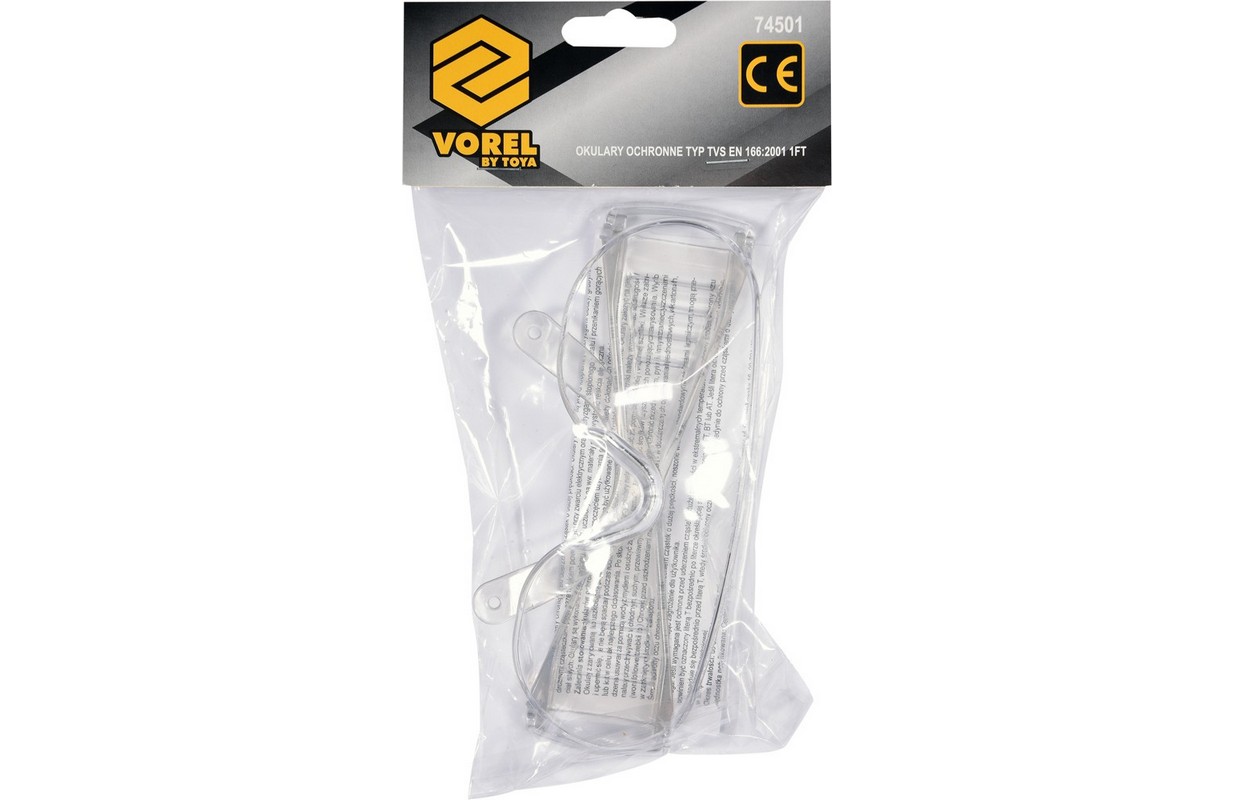 из поликарбоната. Имеют 1-й оптический класс. Предназначен для защиты глаз от брызг с малой энергией удара и брызг жидкости, таких как шлифовка, сверление, резка, покраска и т. д. Защищайте глаза спереди и сбоку во время работы. Очки можно использовать вместе с защитными шлемами и средствами защиты органов слуха.
