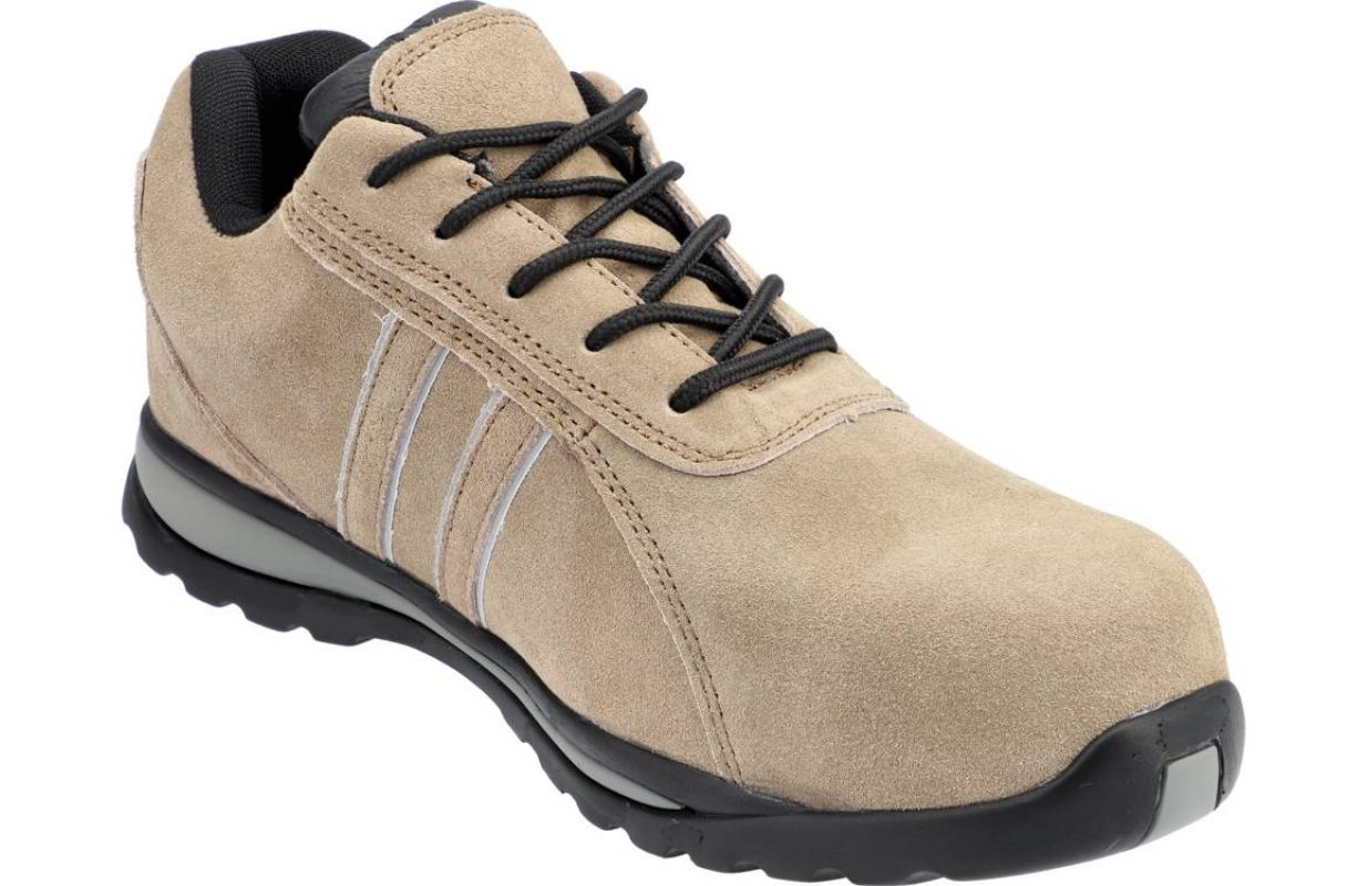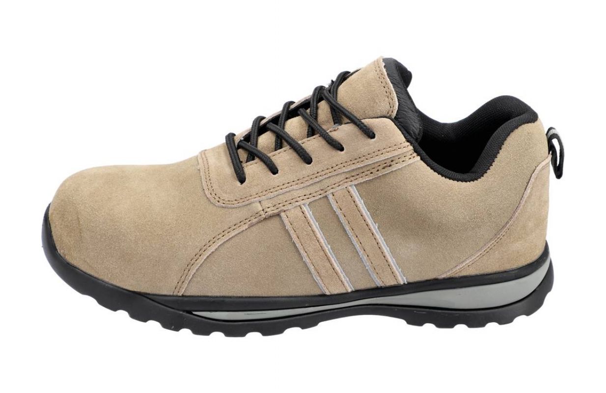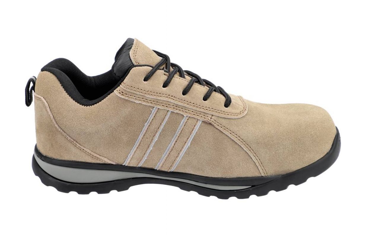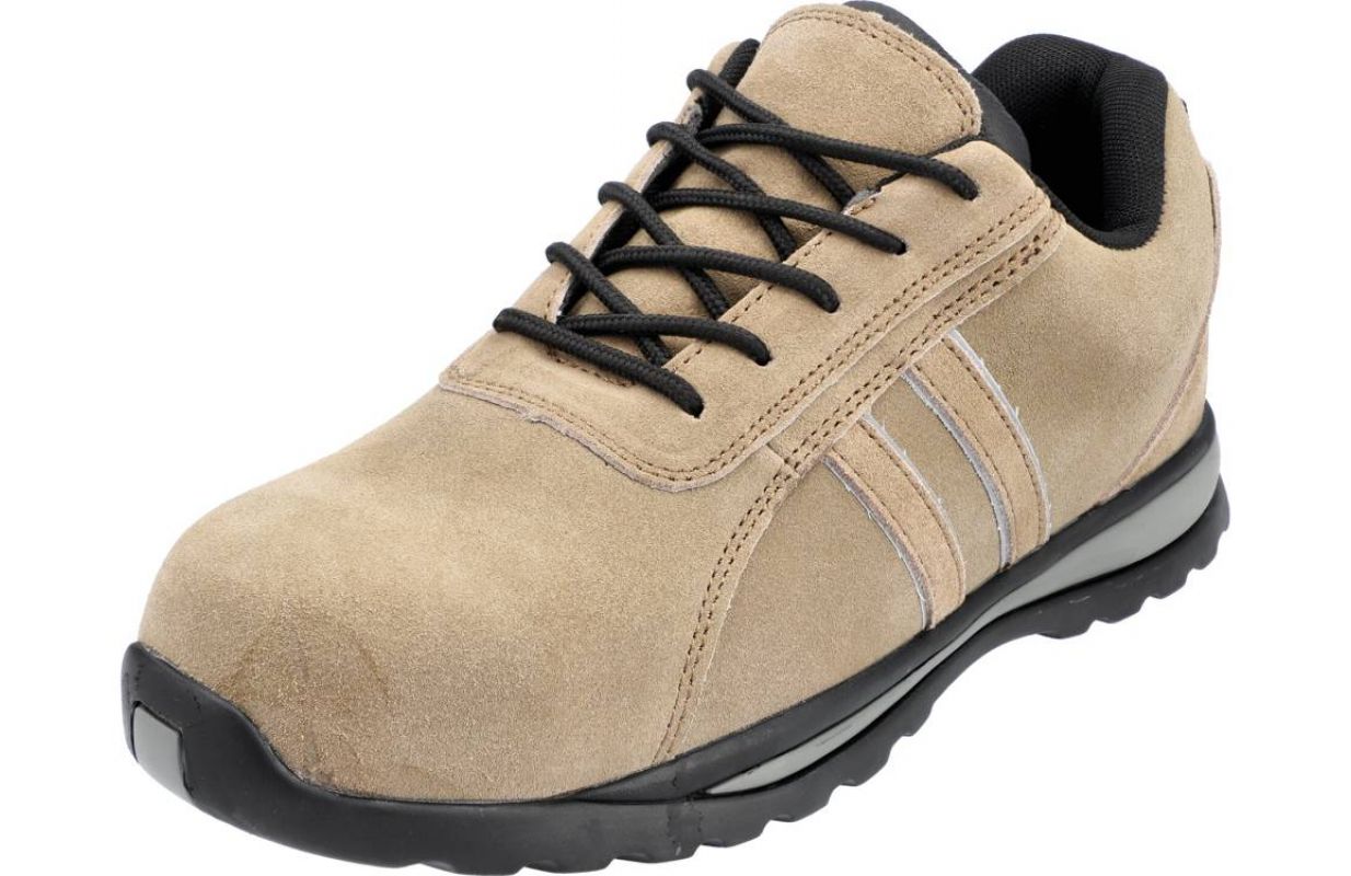 Обувь не содержит металла. И стелька с защитой от проколов, и резиновая подошва гибкие и, в отличие от обуви с традиционной полиуретановой подошвой и стальной вставкой, не ограничивают сгибание плюсневой кости. Верх из натуральной замши украшен светоотражающими вставками, улучшающими видимость пользователя.