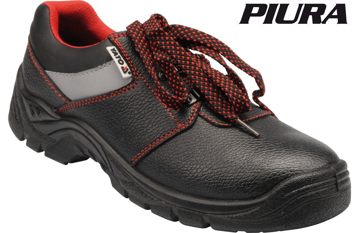 Рабочая обувь YT-80554 из серии PIURA S3 — модель с ударопрочным стальным подноском, антипрокольной вставкой и специально разработанной частью подошвы. перекрывая кончик ботинка, чтобы предотвратить повреждение этой части. Благодаря компактной конструкции обувь значительно снижает водопроницаемость и впитываемость, а светоотражающие вставки по бокам обеспечивают лучшую видимость пользователя.
