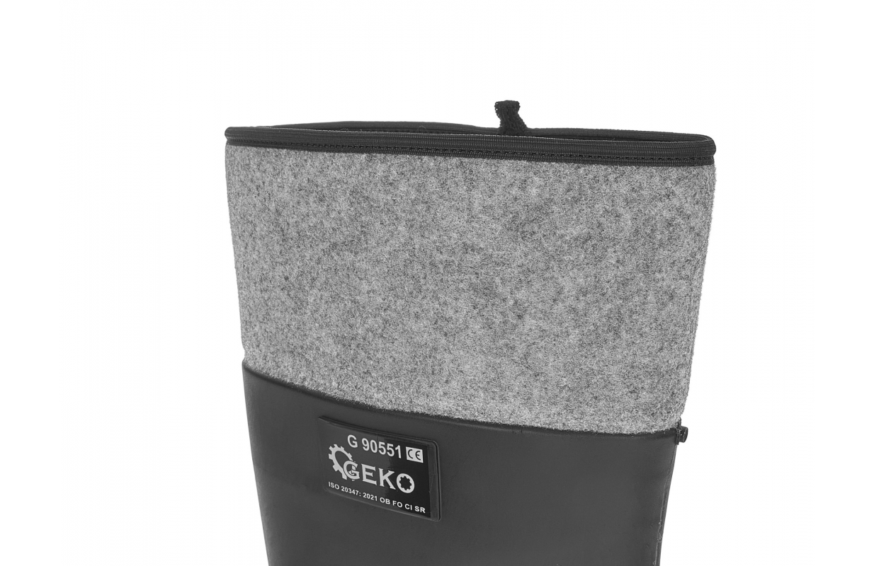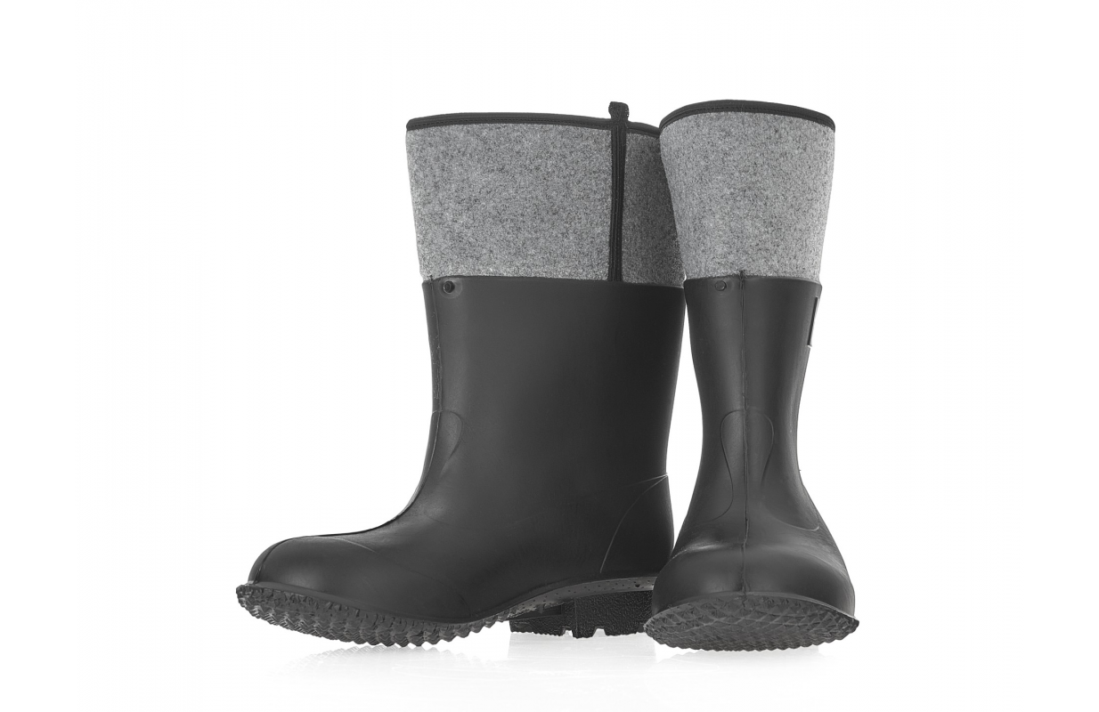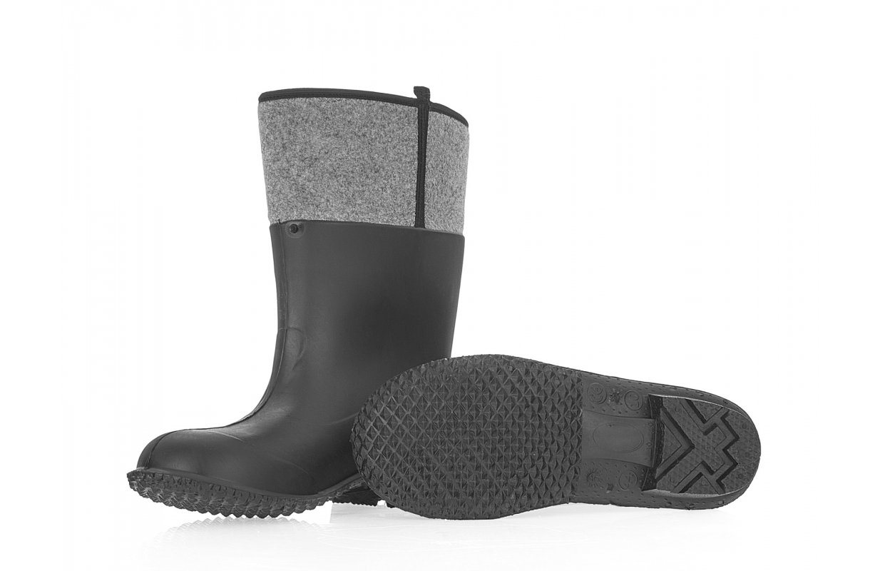 Резиновые сапоги из ПВХ герметичны, защищают от воды, влаги, масел и скольжения по основанию из керамической плитки (SR). Обувь с войлочной подкладкой обеспечивает изоляцию изнаночной стороны от холода.