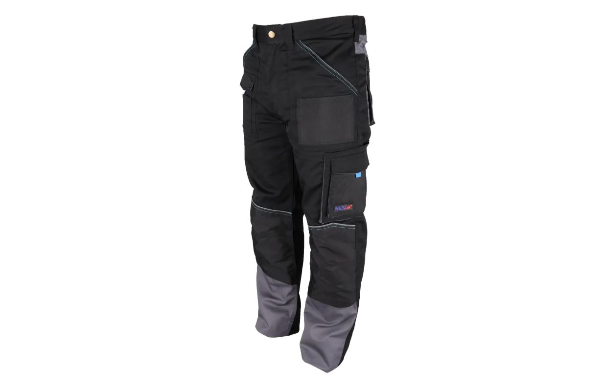 Защитные брюки PREMIUM LINE изготовлены из смеси полиэстера и хлопка. Такой материал, вес которого составляет 240 г/м², обеспечивает высокую устойчивость к истиранию и механическим повреждениям. Дополнительные усиления на коленях выполнены из материала Oxford. Модель оснащена функциональными карманами, включая карман для смартфона. Для повышения прочности брюк используются тройные прошитые швы. Благодаря вшитому эластичному поясу брюки легко сидят и удобны во время использования. Вшитые светоотражающие элементы для повышения безопасности. Идеально подходят для тяжелых строительных и ремонтных работ.