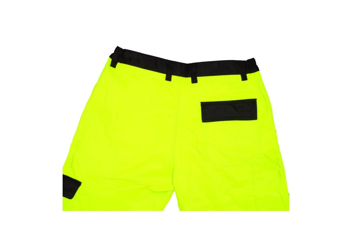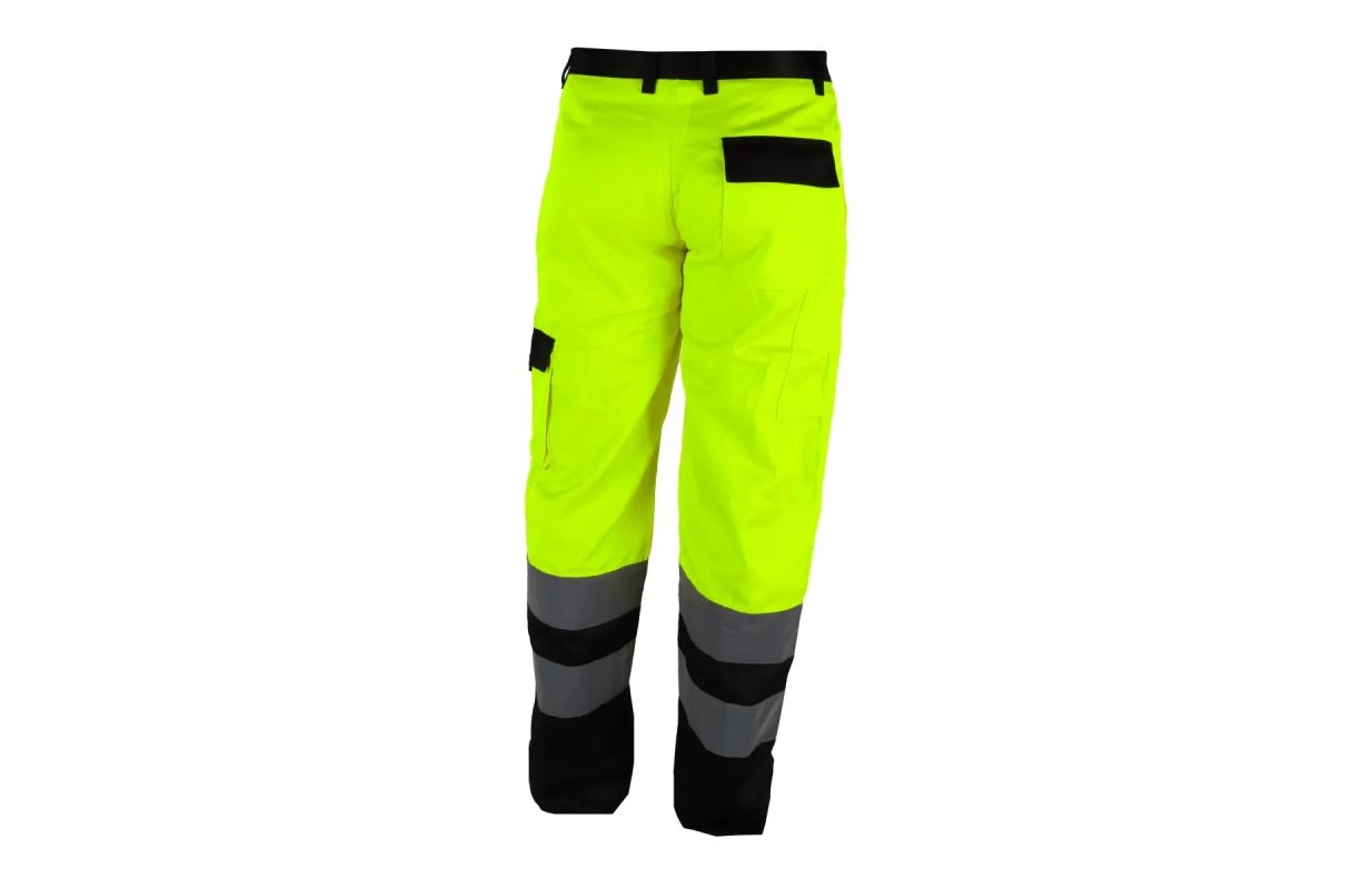 Светоотражающие защитные брюки сшиты из смеси полиэстера и хлопка плотностью 250 гсм. Брюки имеют эластичный пояс. 5 практичных и функциональных карманов и петля для молотка. Для обеспечения видимости в сложных условиях или после наступления темноты брюки имеют светоотражающие полоски на ногах и дополнительно на поясе. Доступны размеры от S до 2XL. Цвет желтый.