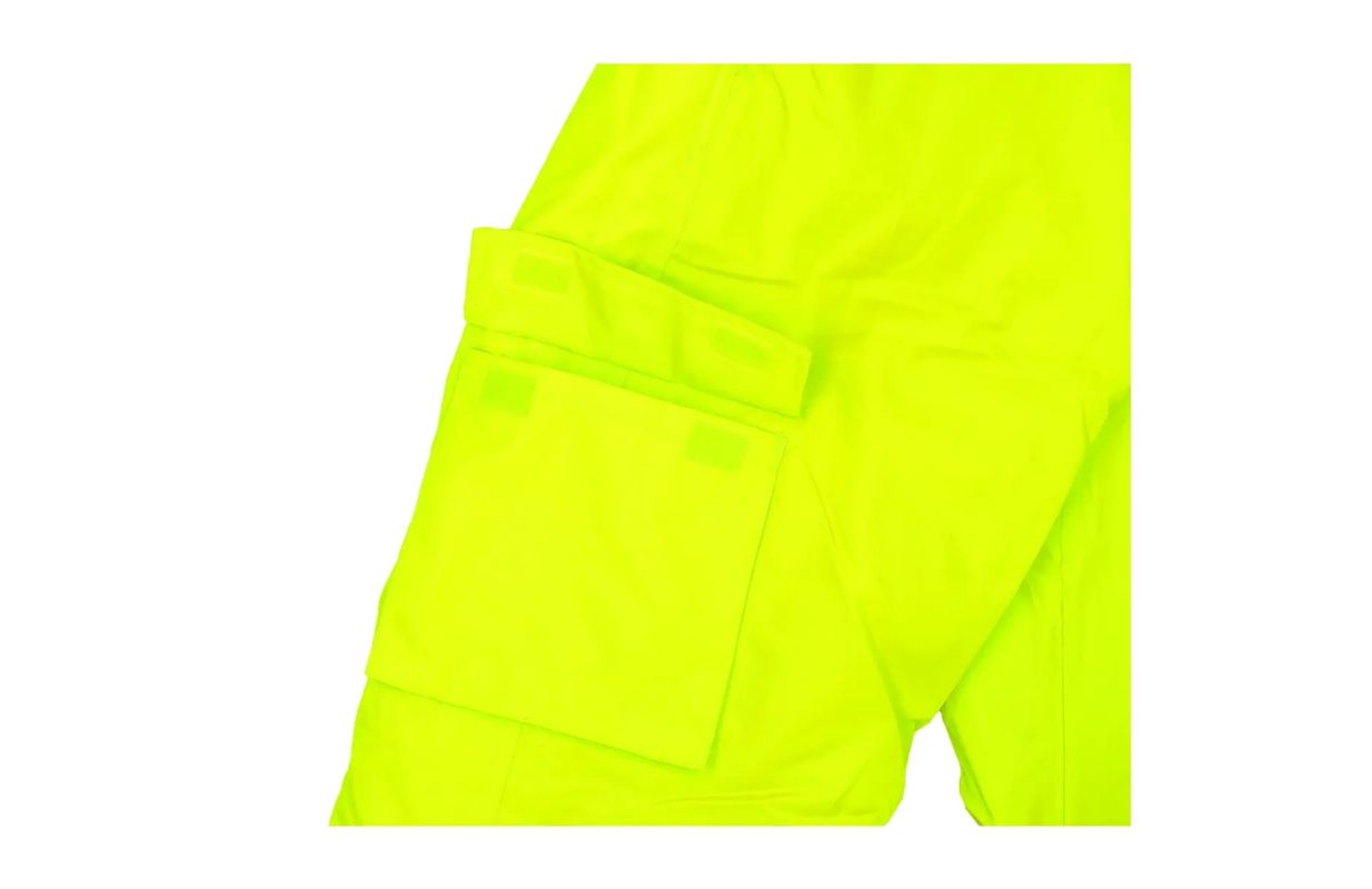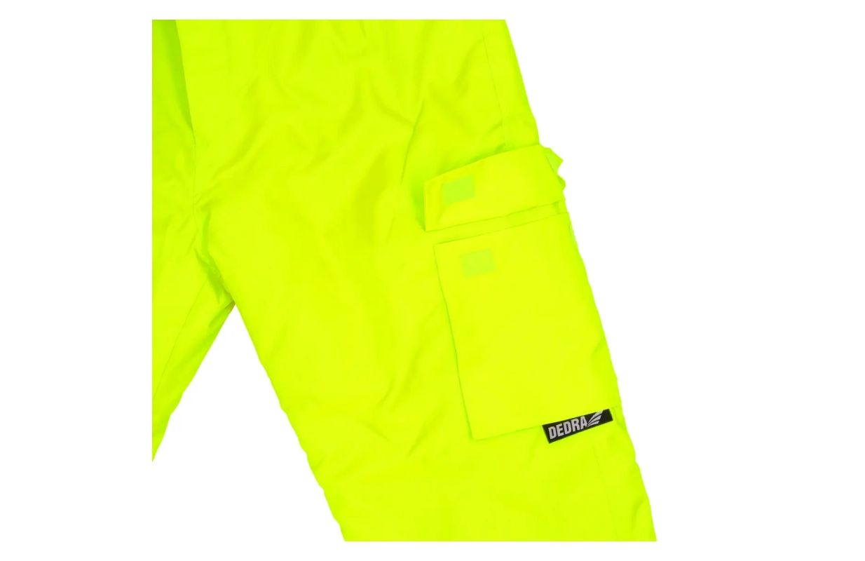 Светоотражающие утепленные брюки сшиты из ткани Oxford 300D плотностью 180 гсм. Ткань обеспечивает ветрозащиту и водонепроницаемость до 2000 мм. Кроме того, используются водонепроницаемые швы. Внутри они имеют стеганый утеплитель из полиэстера плотностью 180 г/м² и подкладку из тафты. Брюки имеют эластичный пояс и высокий подъем сзади. Практичные и функциональные карманы и петля для молотка. Для обеспечения видимости в сложных условиях или после наступления темноты брюки имеют светоотражающие ленты на ногах и дополнительно на поясе. Ленты имеют термопечать шириной 5 см и сертифицированы CE EN20471. Доступны размеры от S до 3XL.