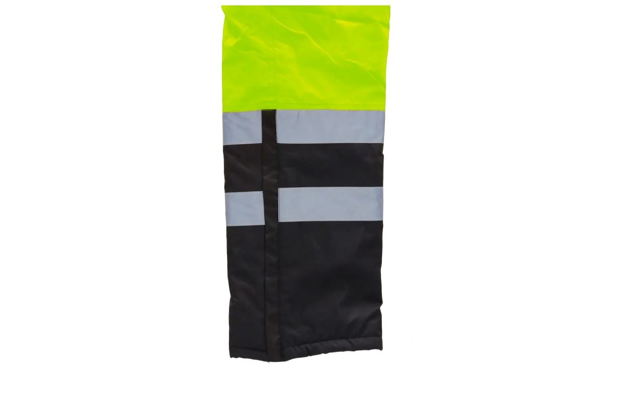 Светоотражающие утепленные брюки сшиты из ткани Oxford 300D плотностью 180 гсм. Ткань обеспечивает ветрозащиту и водонепроницаемость до 2000 мм. Кроме того, используются водонепроницаемые швы. Изнутри они имеют стеганую подкладку из полиэстера 180 г/м² и подкладку из тафты. Брюки имеют эластичный пояс и высокий подъем сзади. Практичные и функциональные карманы и петля для молотка. Для обеспечения видимости в сложных условиях или после наступления темноты брюки имеют светоотражающие ленты на ногах и дополнительно на поясе. Ленты имеют термопечать шириной 5 см и сертифицированы CE EN20471. Доступны размеры от S до 3XL.