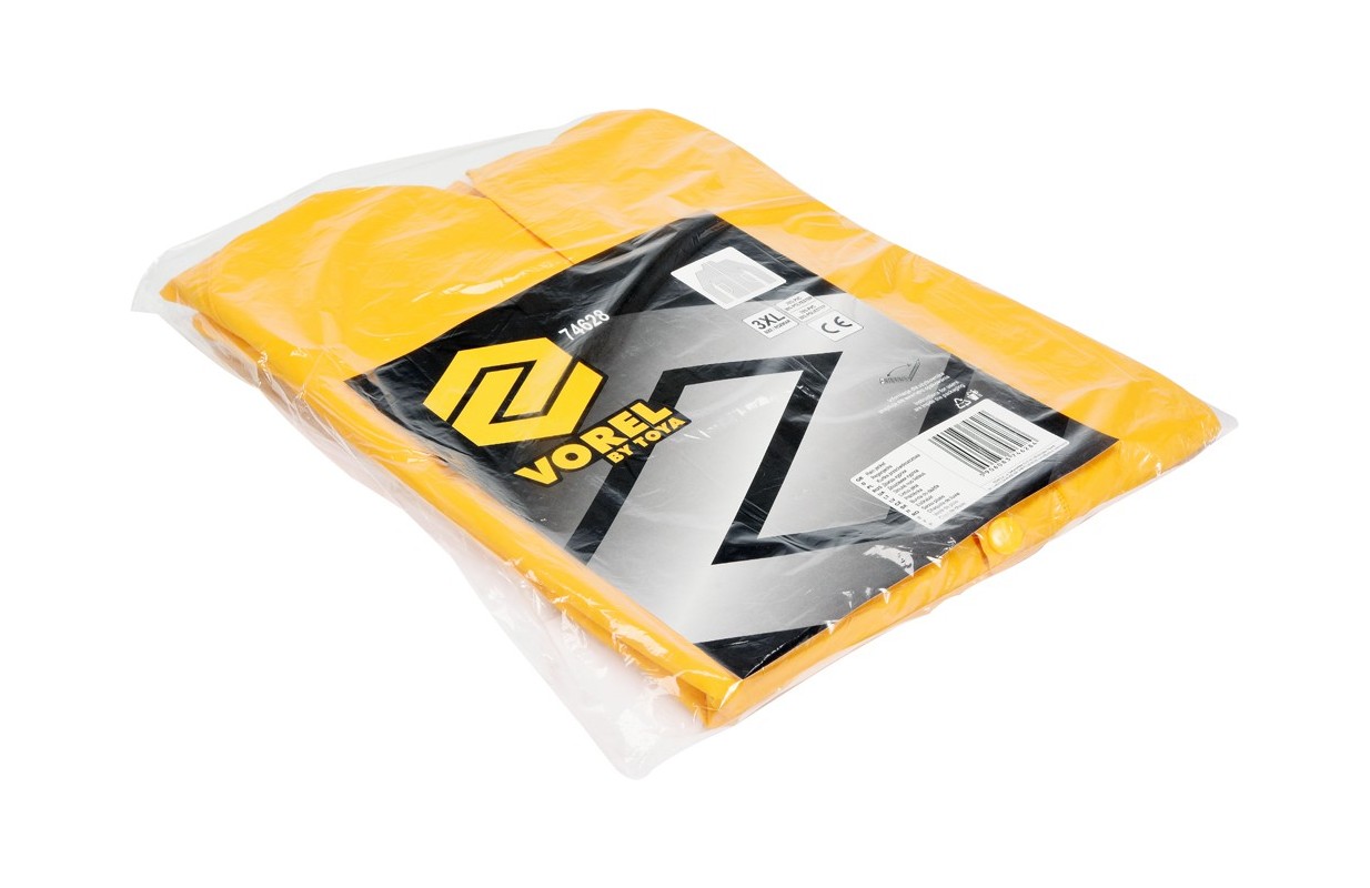 Размер XXXL FACTORY: SMILE IN RAIN, F-RY NO.: FY7701-1; РАЗМЕР XXXL, ЦВЕТ: ЖЕЛТЫЙ, МАТЕРИАЛ: 0. 28 70% ПВХ/ 30% ПОЛИЭСТЕР; 2 БОЛЬШИХ ПЕРЕДНИХ КАРМАНА (19X17 СМ), КАЖДЫЙ С КЛАПАНОМ; БЕЛАЯ МОЛНИЯ СПЕРЕДИ С ЗАКРЫТЫМ ШТОРМОВЫМ КЛАПАНОМ; 4 ЖЕЛТЫЕ ПЛАСТИКОВЫЕ ЗАЩЕЛКИ НА ШТОРМОВОМ КЛАПАНЕ; 2 ВЕНТИЛЯЦИОННЫХ ОТВЕРСТИЯ ПОД МЫШКАМИ И 3 ОТВЕРСТИЯ НА СПИНЕ (КАК НА ПРИЛАГАЕМОЙ ФОТОГРАФИИ); ТЕКСТИЛЬНЫЙ ШНУРОК В КАПЮШОНЕ И В ПОДОЛЕ ДЛЯ РЕГУЛИРОВАНИЯ; ВНУТРЕННЯЯ МАНЖЕТА НА РУКАВЕ