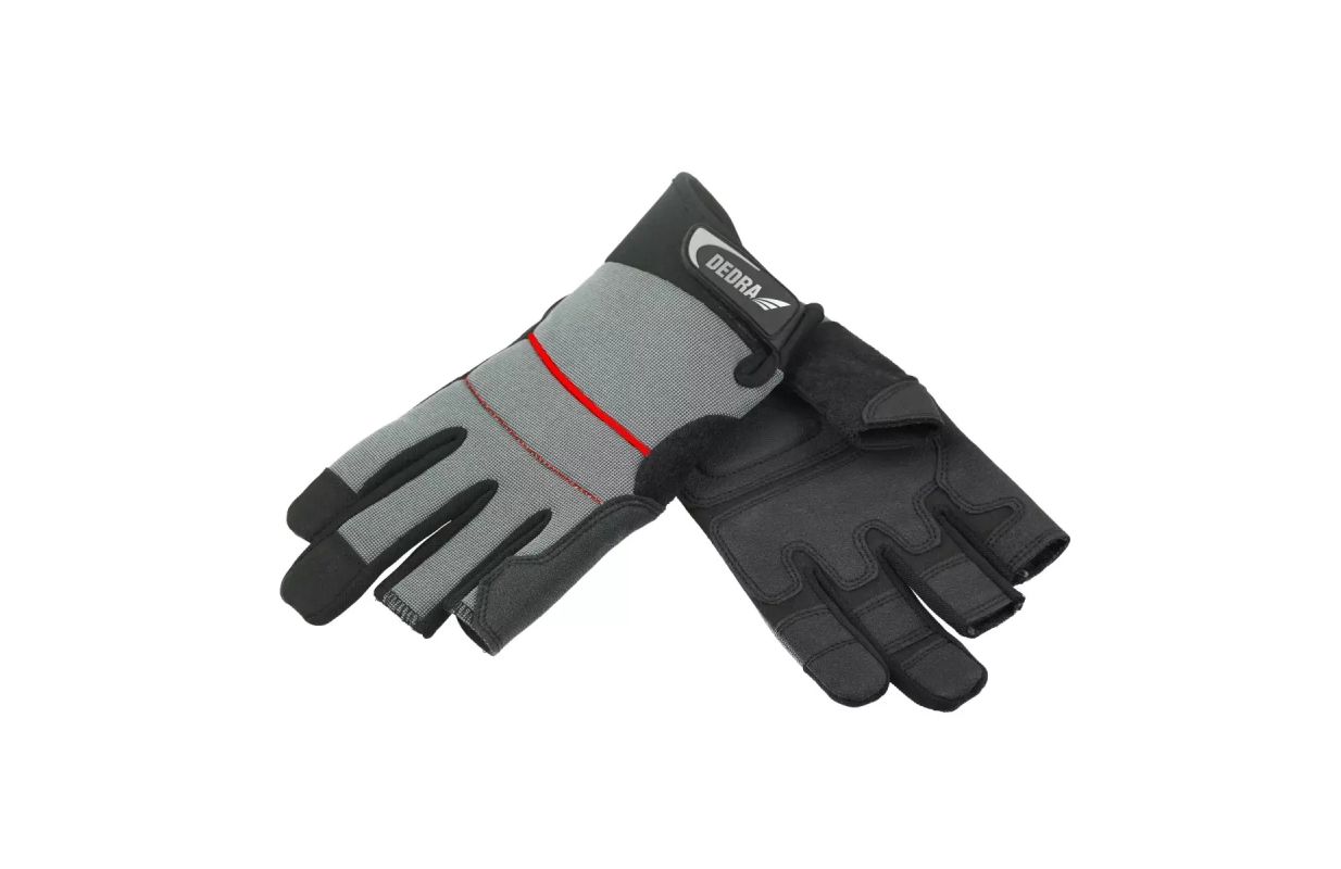 Рабочие перчатки модели BH1014R09 - идеальный выбор для защиты рук при выполнении различных работ, требующих точности и хорошего ощущения, таких как техническое обслуживание и ремонт, сборка, эксплуатация оборудования или DIY. Верхняя часть перчаток изготовлена из эластичного спандекса для идеальной посадки, а отсутствие кончиков трех пальцев обеспечивает лучшее ощущение руки. Перчатки имеют усиление с наполнителем из пены EVA - усиленная подушка в области захвата защищает от ударов и вибраций, что окажется полезным при работе с ударными и электроинструментами.