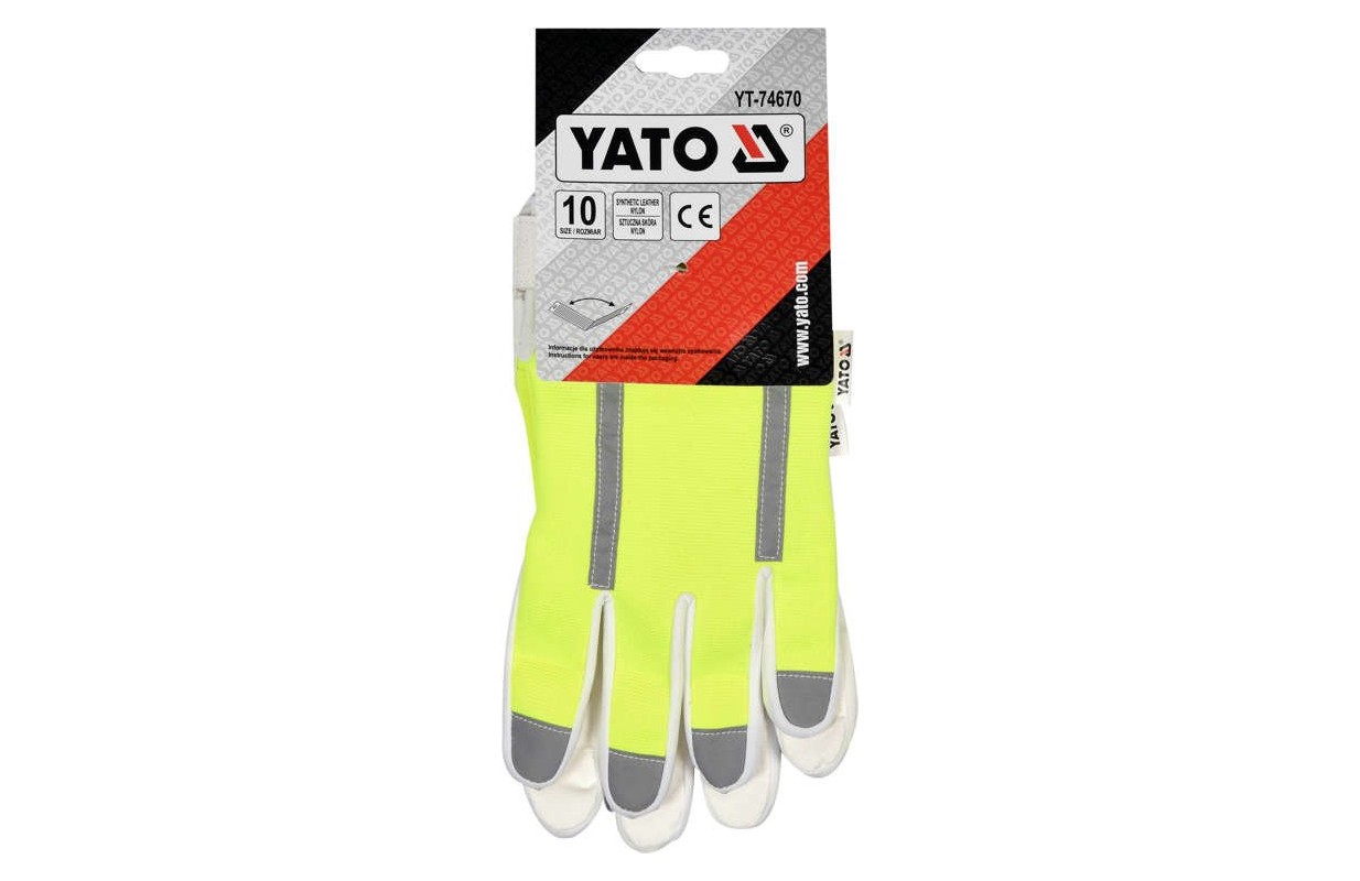 Благодаря использованию ярко-желтой ткани со светоотражающими элементами перчатки YT-74670 улучшают видимость пользователя. Перчатки хорошо сидят на руке, а захватывающая часть из материала с высокой стойкостью к истиранию эффективно защищает от потертостей.
