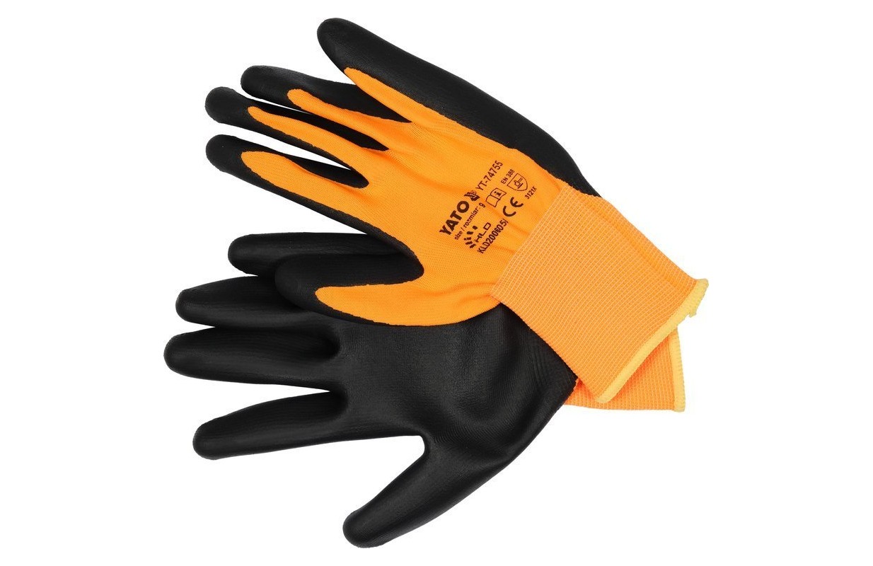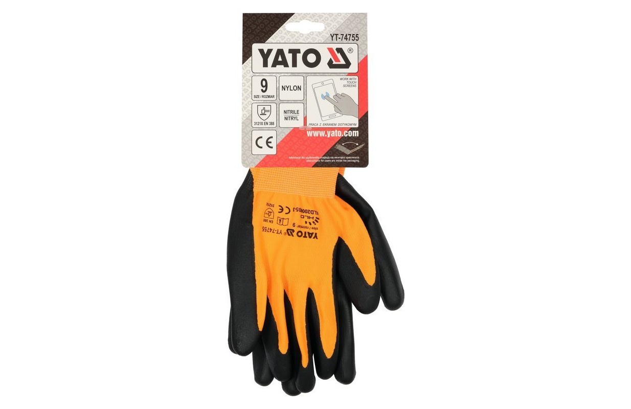 Перчатки YT-74755 предназначены для защиты рук от механических повреждений. Бесшовная конструкция с плотным стежком, то есть 15 стежков на дюйм, с покрытием из высококачественного нитрила и эластичной манжетой обеспечивает максимальный комфорт и эргономику работы, а также эффективную защиту захватной части от масел, жиров и растворителей. Специальное покрытие, обеспечивающее работу сенсорных экранов, позволяет реже снимать перчатки с руки, что, помимо повышения безопасности пользователя, экономит его время и влияет на срок службы самой перчатки. Они соответствуют требованиям EN 420 и EN 388: 2016.