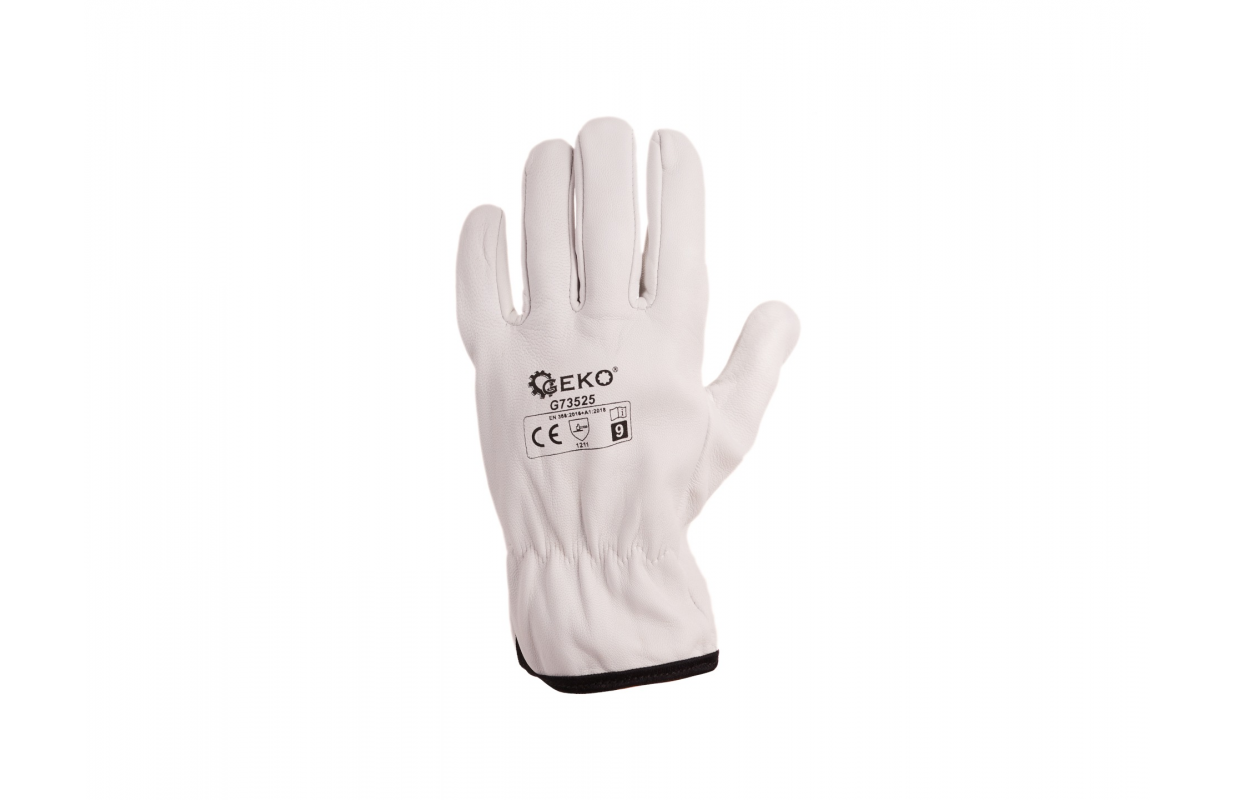 Кожаные рабочие перчатки GEKO EN388 2131 – это бесценная защита рук во время работы, требующей не только точности, но и безопасности. Вот основные особенности и преимущества этого продукта: