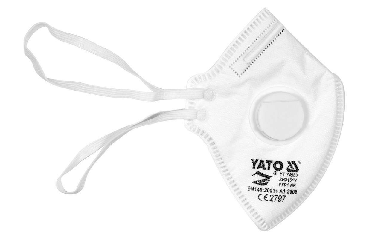 Противопылевые респираторы YT-74980 класса защиты FFP1 с клапаном выдоха. Четырехслойная структура представляет собой сочетание внутренних рабочих слоев, т.е. фильтрующего и специального слоя для горячего воздуха, благодаря которому на полумаске оседает минимальное количество влажного воздуха, и внешних слоев, повышающих комфорт использования и механическая сила. Полумаски с клапаном выдоха облегчают эвакуацию воздуха и хорошо зарекомендовали себя при выполнении больших физических нагрузок.