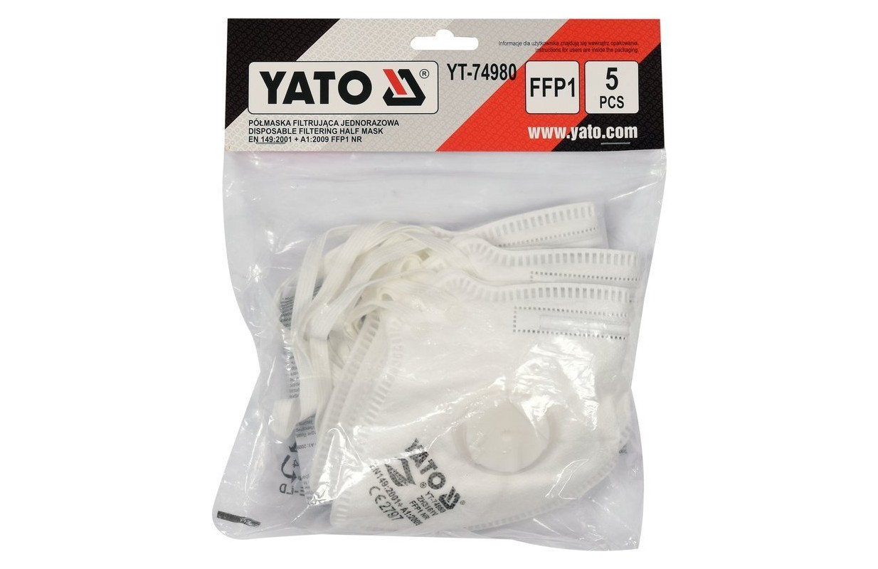 Полумаски YT-74980 были протестированы аккредитованным уполномоченным органом в ЕС и получили сертификат CE на основании стандарта EN 149: 2001 + A1: 2009.