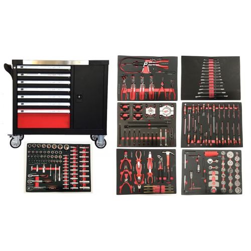 Инструментальный шкаф на роликах | с инструментами | 7 ящиков / 1 дверца | 298 инструментов (H70078)