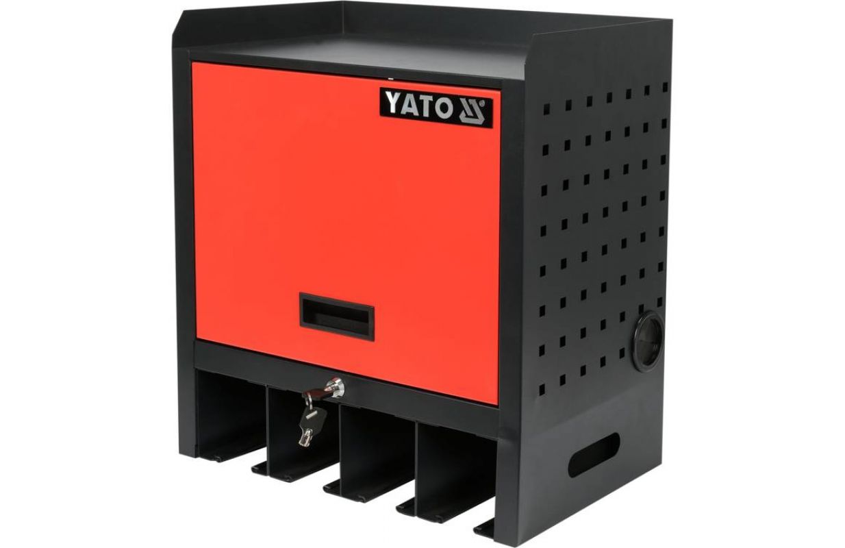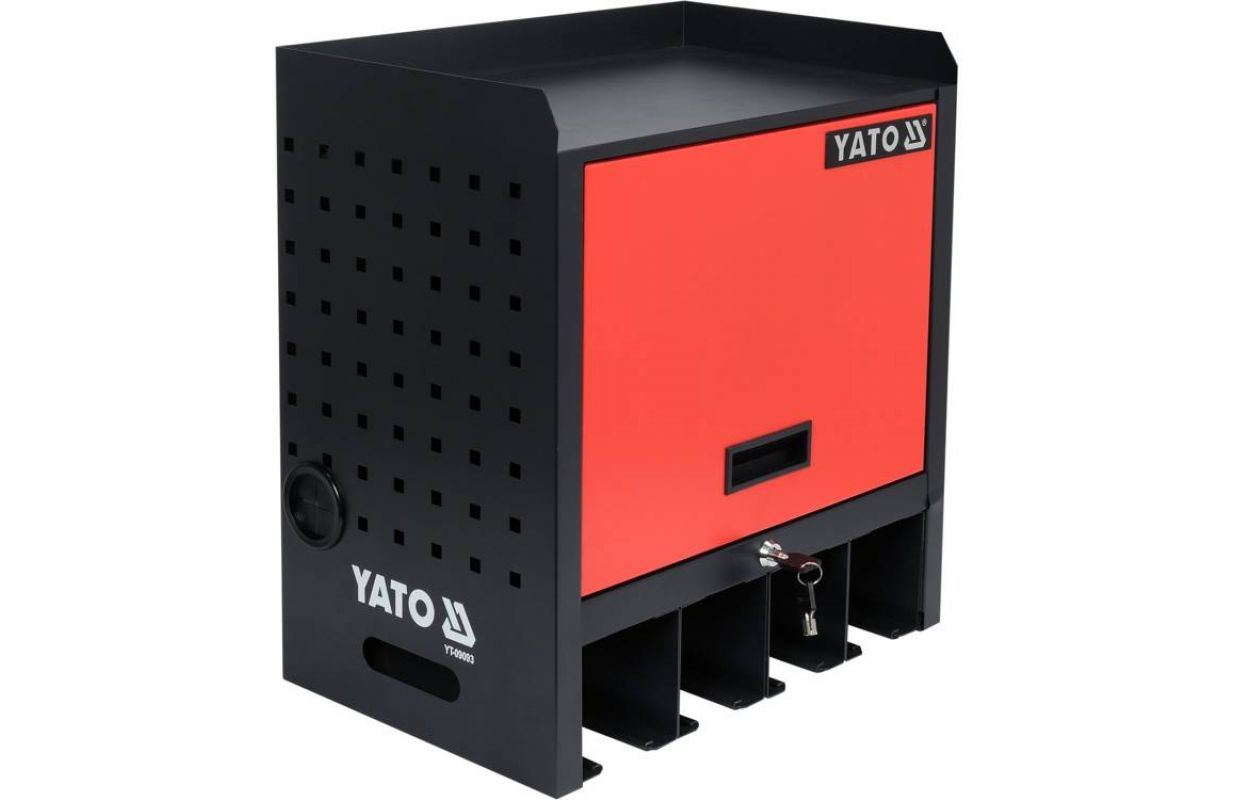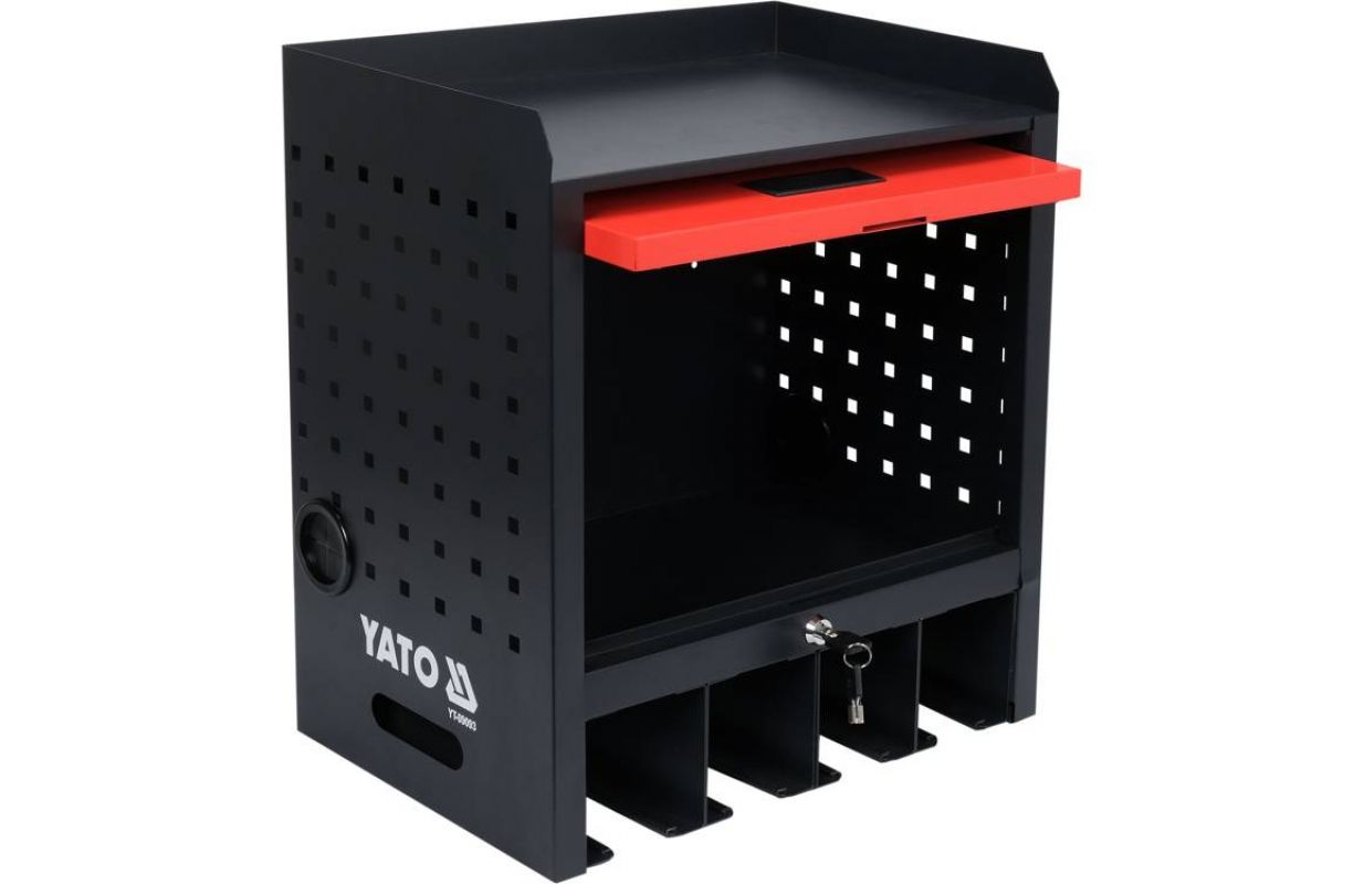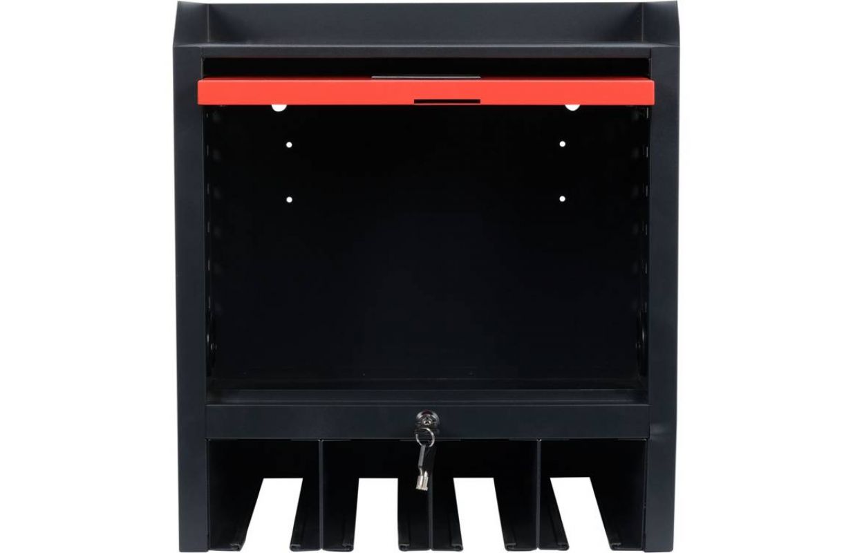Запираемый шкаф для хранения инструментов мастерской. Пользователь имеет верхнюю полку над шкафом и полку под шкафом с 4 карманами для подвешивания инструментов. размеры: 480 х 430 х 280 мм