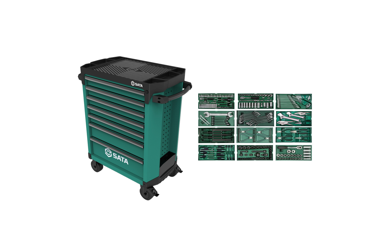 Инструментальный шкаф ST95113G + 12 лотков с наборами инструментов Лоток. S09901 Набор торцевых головок 1/4» 66 шт.