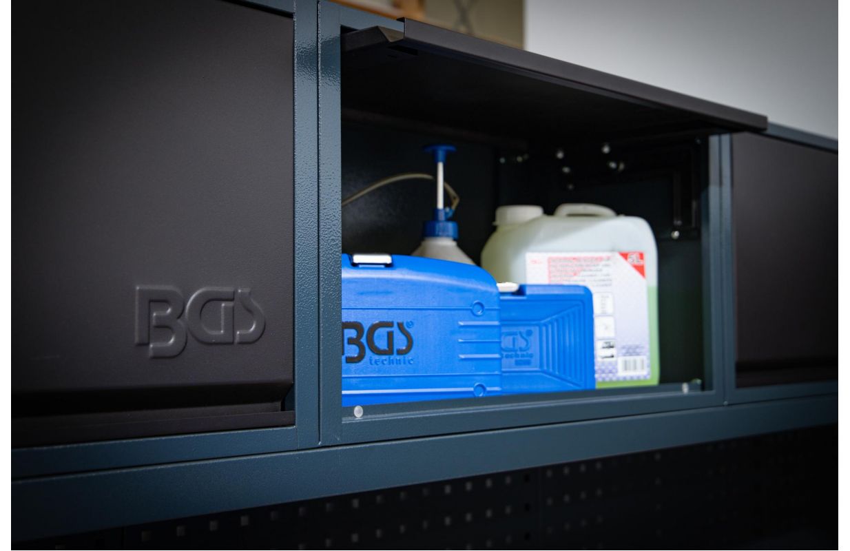 Описание для создания мастерской сервисного центра, на заводах и предприятиях или собственной гаражной мастерской дома Модульная система хранения навесных шкафов Самонесущая конструкция, не требует дополнительного крепления Рабочая зона оборудована столешницей из массива дерева толщиной 30 мм с перфорированной стеновой панелью для индивидуального и четко организованного хранения инструментов Выдвижные ящики с системой самозакрывания Навесные шкафы с амортизаторами для плавного открывания и закрывания предлагает дополнительные возможности хранения для оптимального использования рабочей зоны Регулируемые по высоте и индивидуально используемые полки Индивидуально запираемые элементы для предотвращения несанкционированного доступа Все шкафы с регулируемыми по высоте ножками Индивидуальная настройка оборудования вашей мастерской в сочетании с другими элементами вкл. светодиодные осветительные элементы Ширина ящика (внутренний размер): 567 мм Глубина ящика (внутренний размер): 408 мм Высота ящика (внутренний размер): 5 x 48,5 мм | 1 x 118 мм | 1 x 190 мм Толщина стенки корпуса: 0,8 - 1,2 мм Комплект поставки: