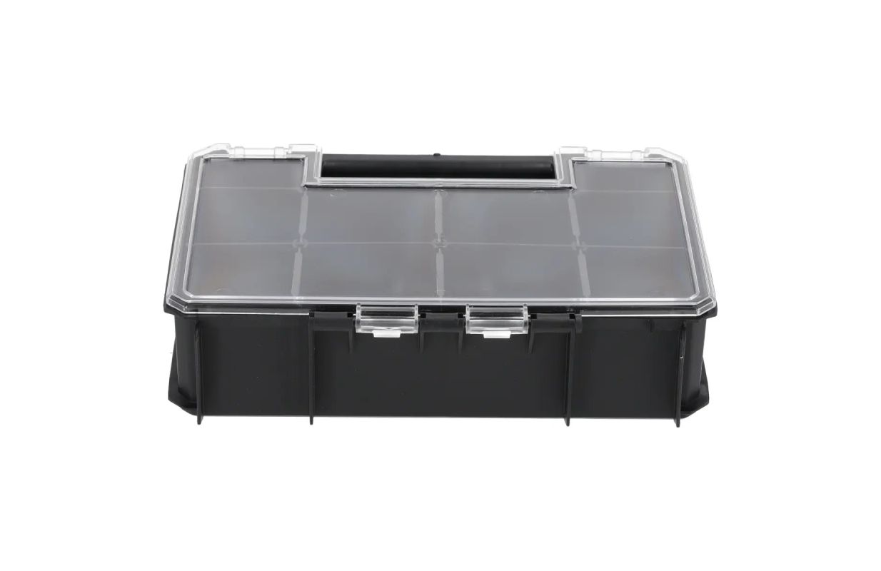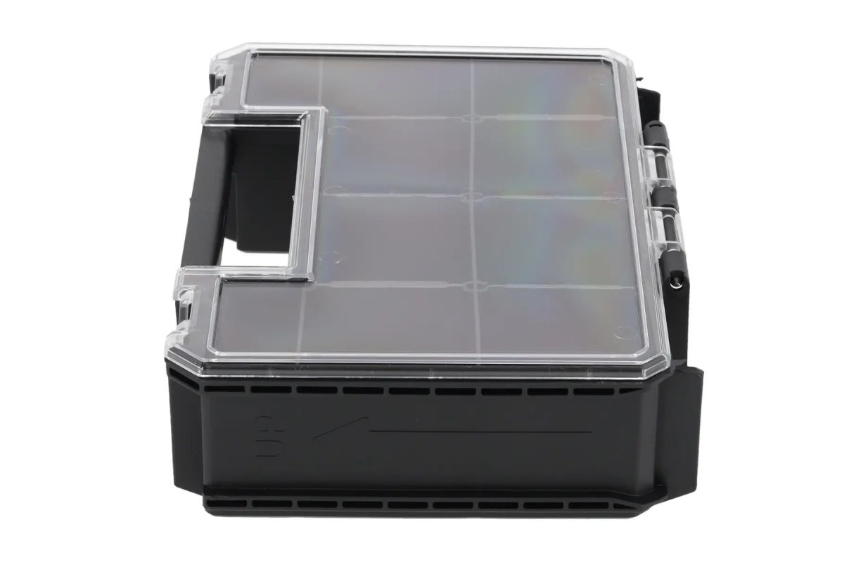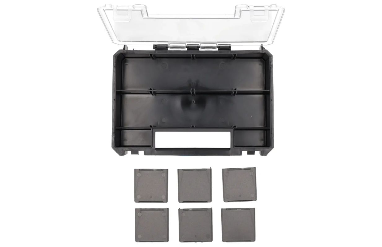 Размеры коробки составляют 257x180x65 (длина, ширина, высота). Благодаря компактному размеру в боксе N0305 или N0308 можно разместить от 4 до 6 органайзеров N0310. Съемные разделители позволяют адаптировать органайзер к вашим индивидуальным потребностям. Органайзеры предназначены для хранения небольших аксессуаров, таких как винты, гайки, болты.