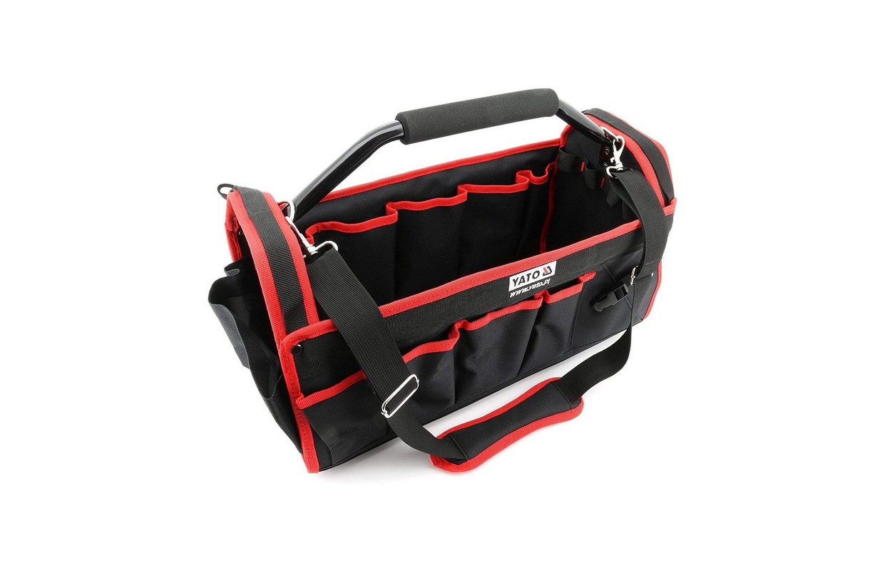 Прочная сумка для инструментов из улучшенного нейлона, усиленная металлической откидной крышкой для удобного открывания и закрывания. Благодаря практичной и легкой молнии и многочисленным карманам сумка идеально подходит для мобильных служб, мастерских, домов, садов