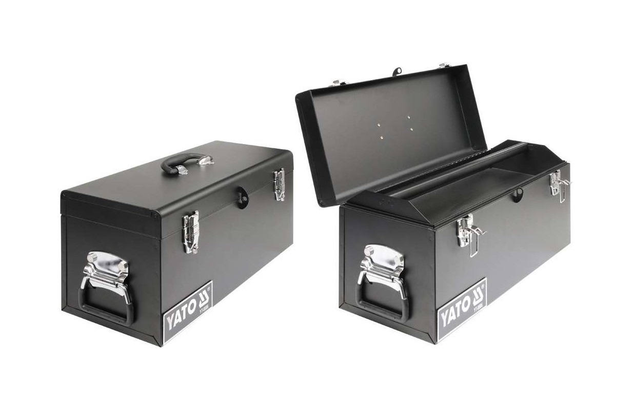 Отличный ящик для инструментов, изготовленный из высококачественных материалов, гарантирующих его долговечность и надежность в каждый момент использования. Коробка с порошковым покрытием, прочная конструкция. Имеет основное отделение и съемную полочку, два металлических замка и две дополнительные боковые ручки. Ящик изготовлен из стального листа с возможностью закрытия на замок.