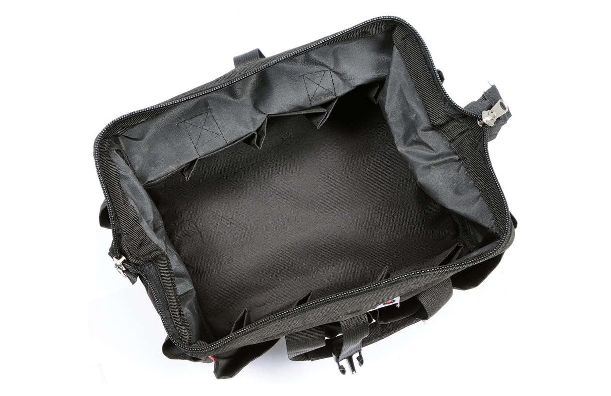 Прочная сумка с усиленной структурой. Предназначен для перевозки большего количества инструментов. Имеет большие карманы для удобного размещения мелких инструментов, закрывающиеся на молнию.